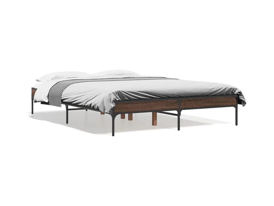 Lit double chêne marron 120x190 cm bois d'ingénierie et métal FR16575