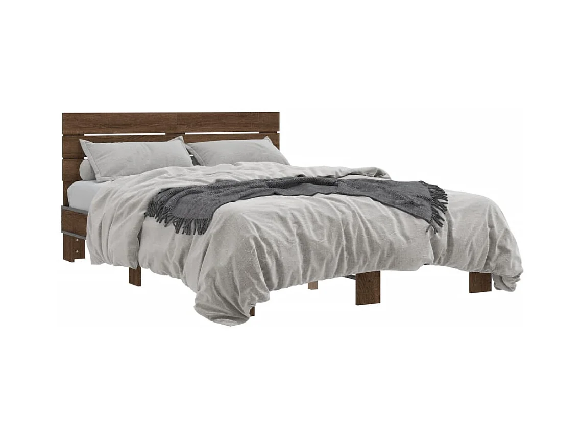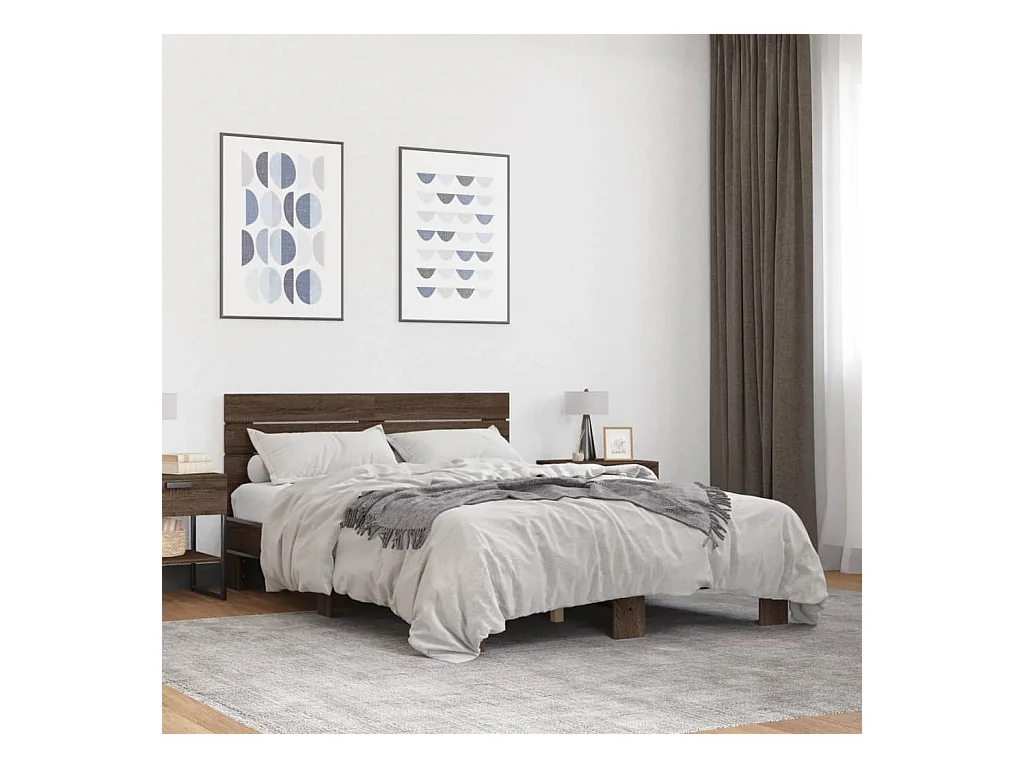 Lit double chêne marron 140x200 cm bois d'ingénierie et métal FR34481