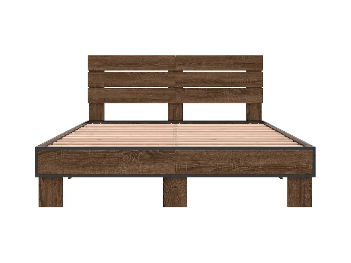 Lit double chêne marron 140x200 cm bois d'ingénierie et métal FR94121