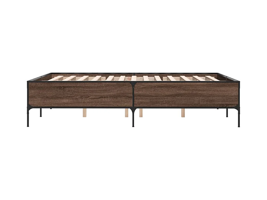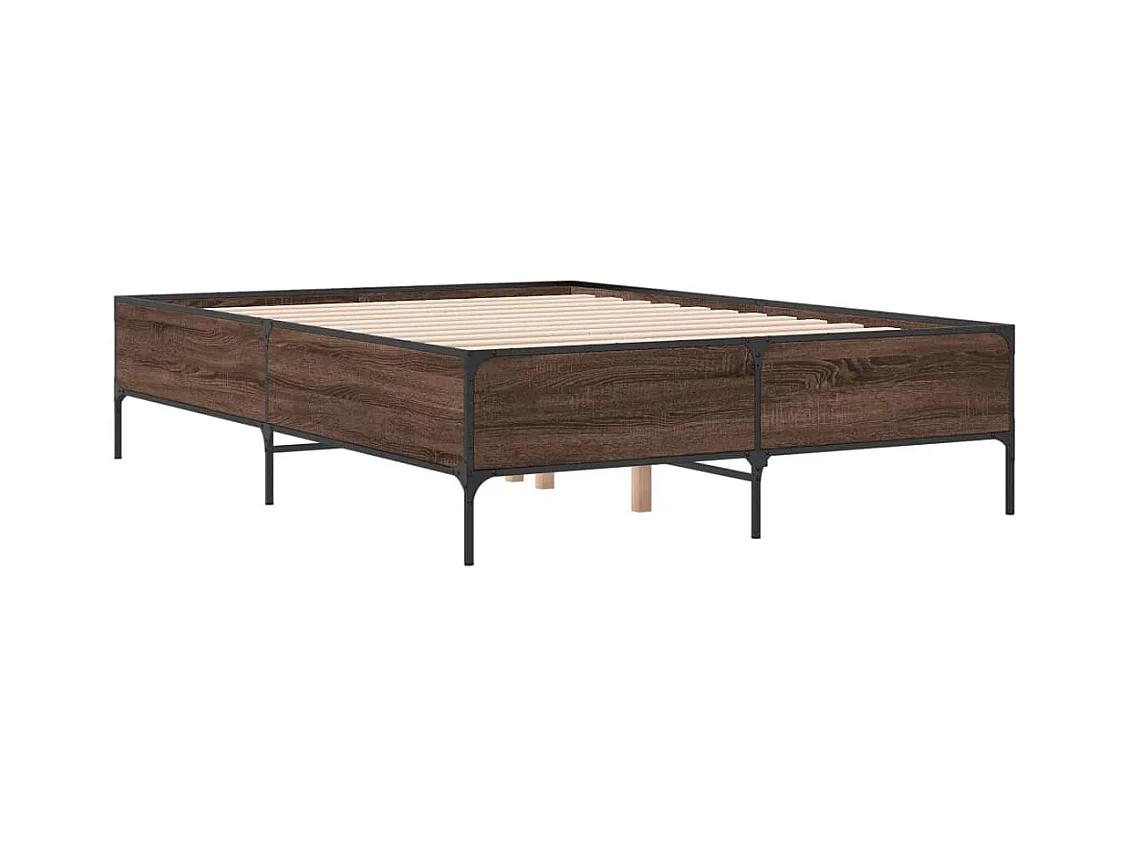 Lit double chêne marron 160x200 cm bois d'ingénierie et métal FR29592