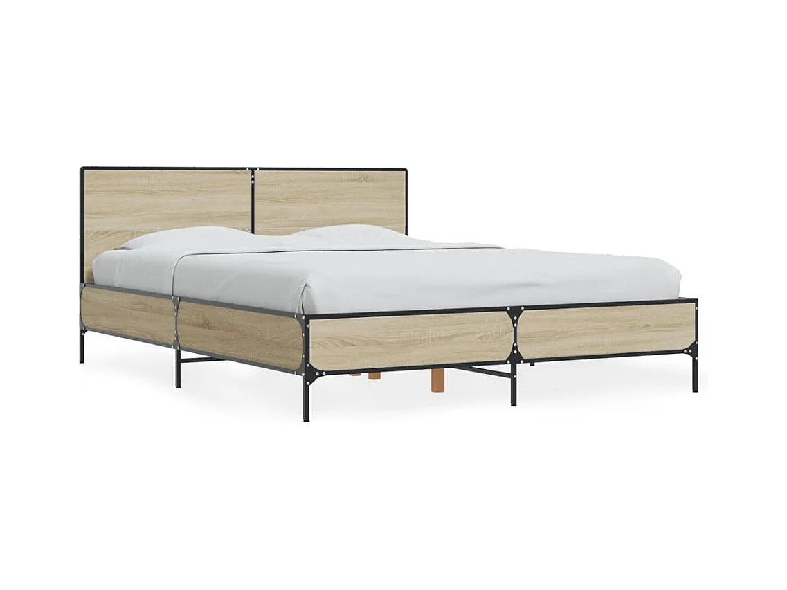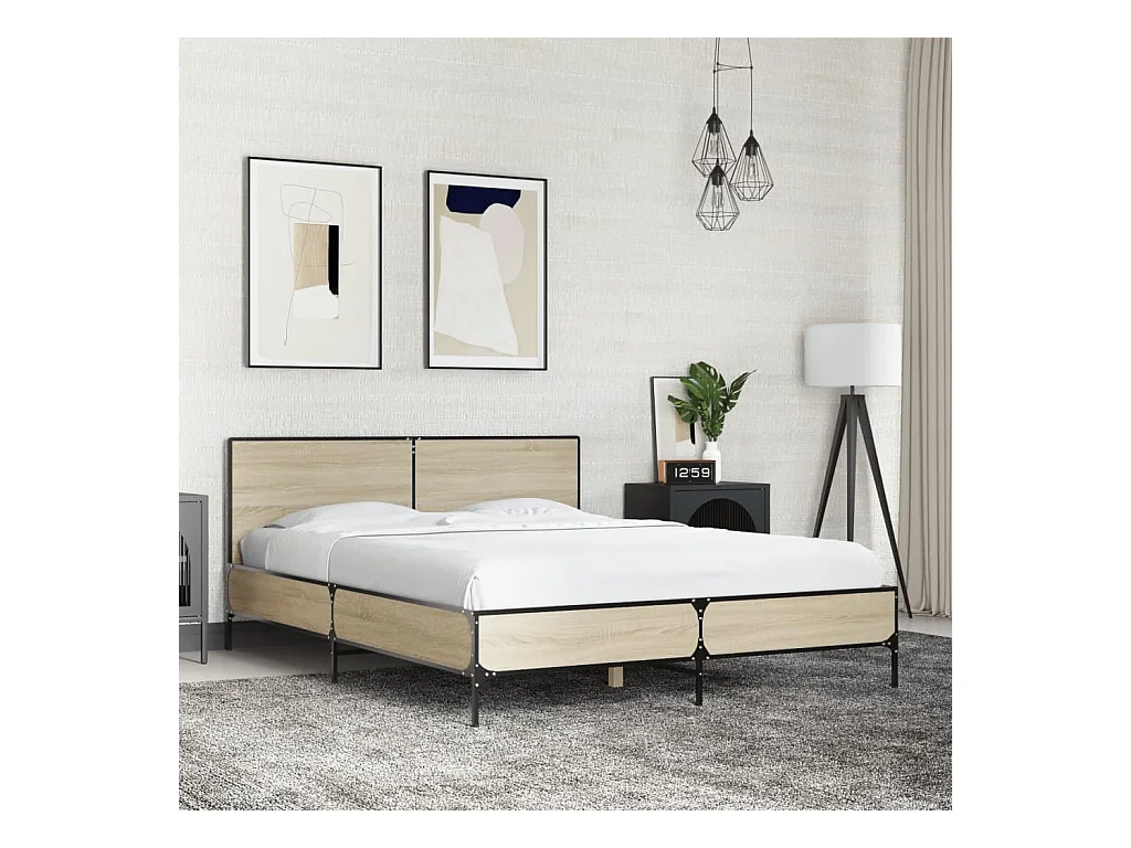 Lit double chêne sonoma 135x190 cm bois d'ingénierie et métal FR35029