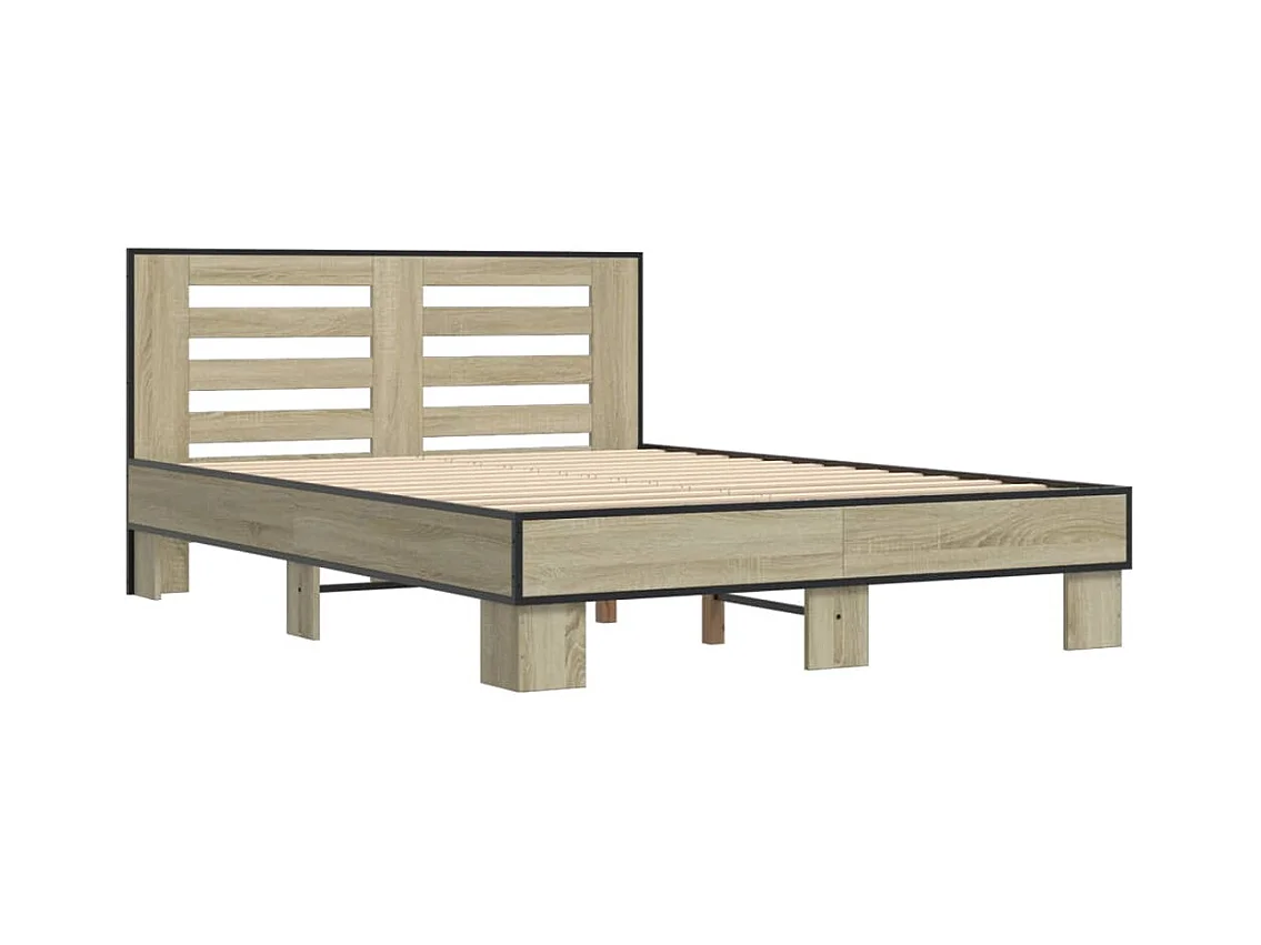 Lit double chêne sonoma 140x190 cm bois d'ingénierie et métal FR96555