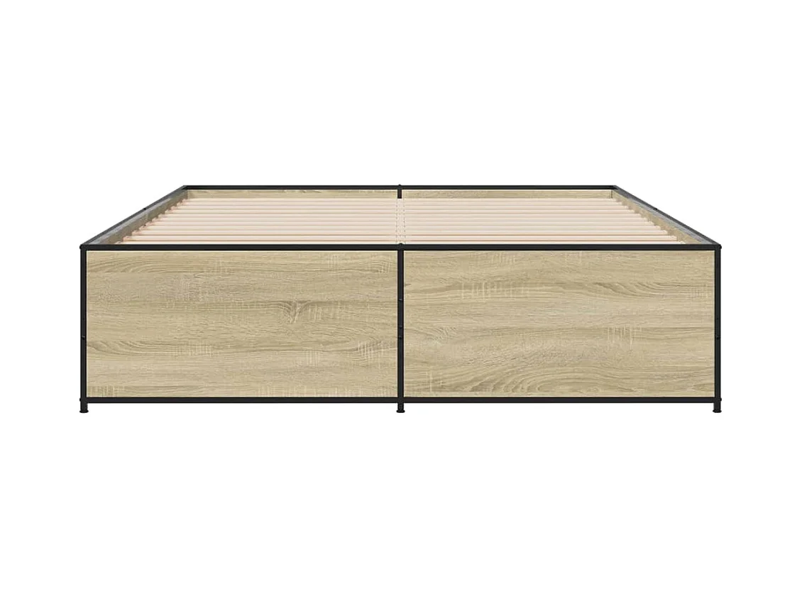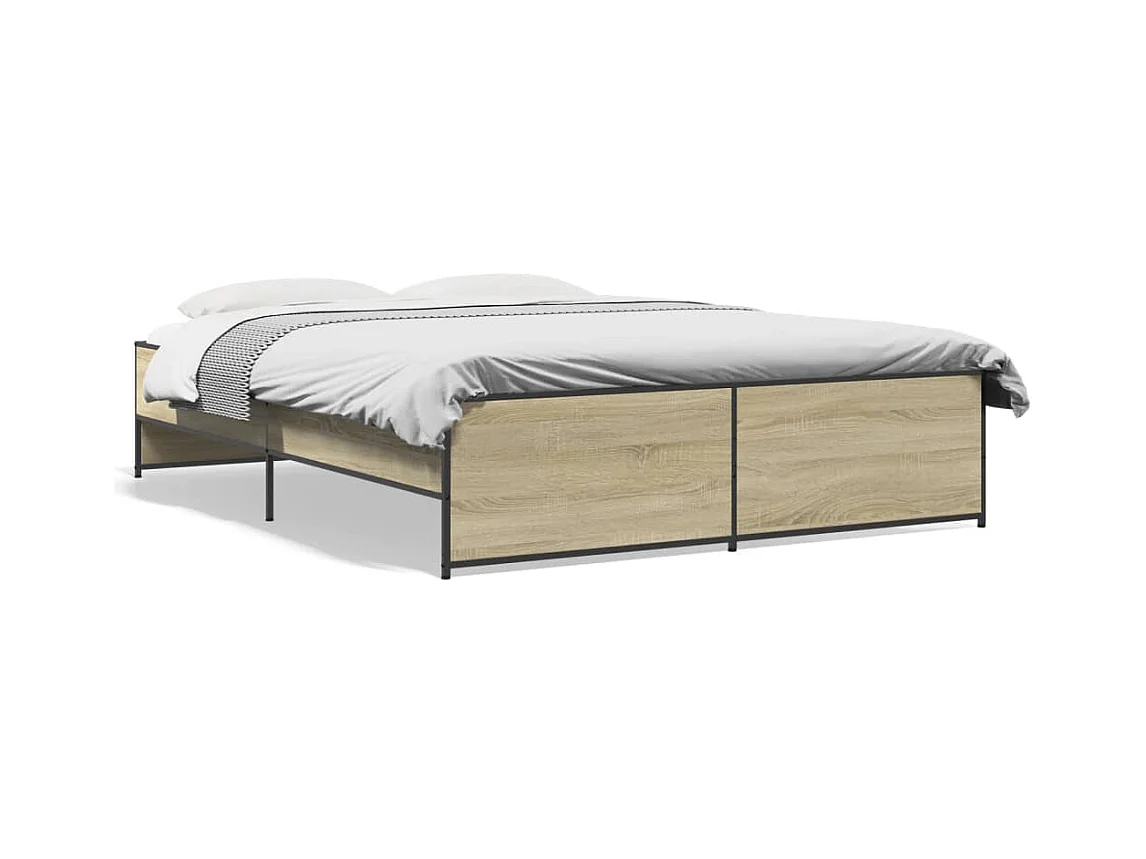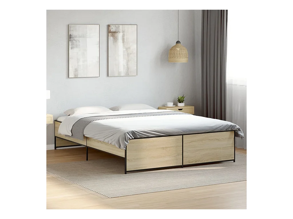 Lit double chêne sonoma 150x200 cm bois d'ingénierie et métal FR21985