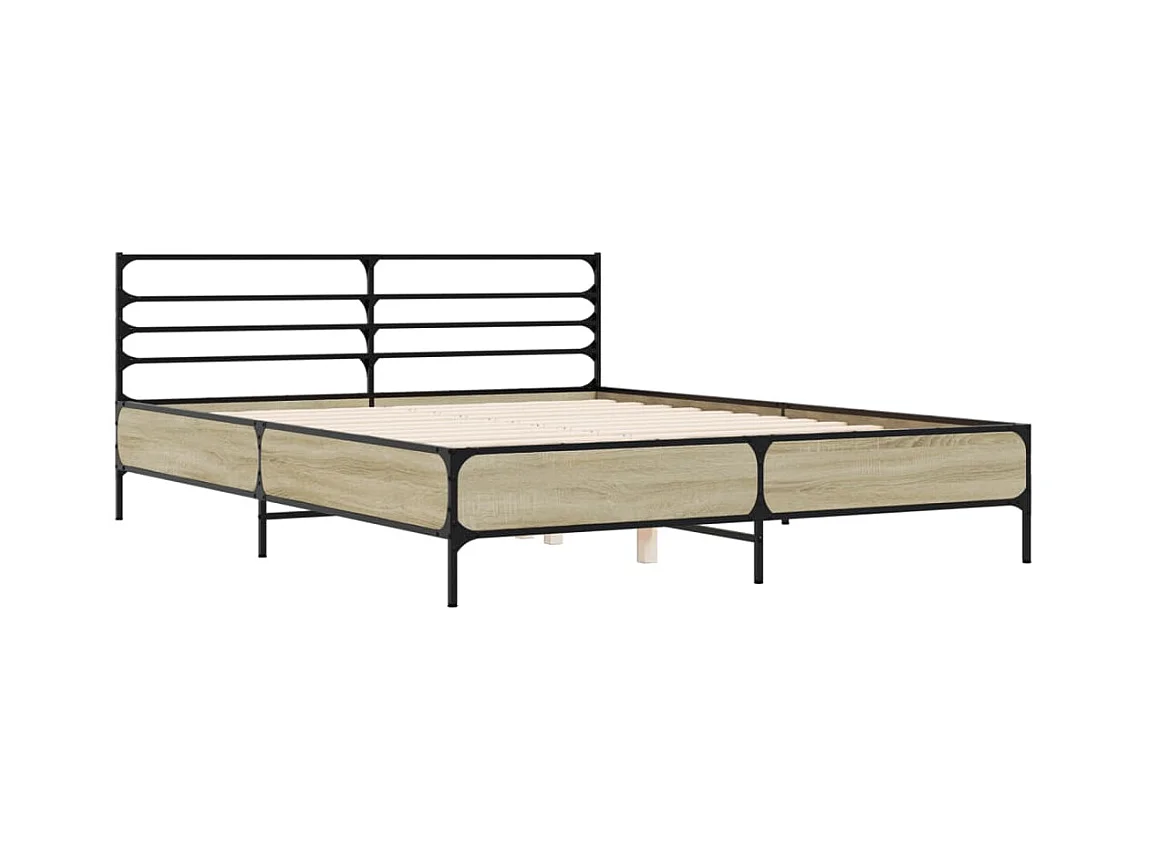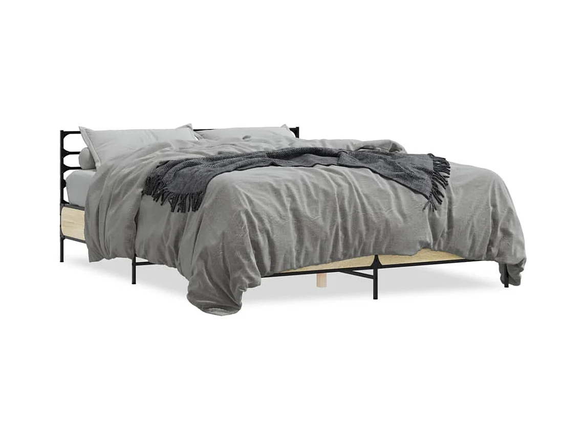 Lit double chêne sonoma 150x200 cm bois d'ingénierie et métal FR21985
