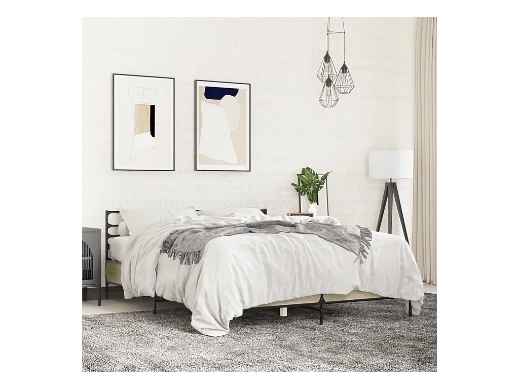 Lit double chêne sonoma 150x200 cm bois d'ingénierie et métal FR49396