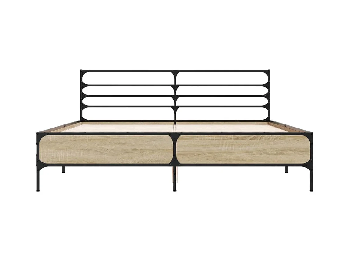 Lit double chêne sonoma 150x200 cm bois d'ingénierie et métal FR47634