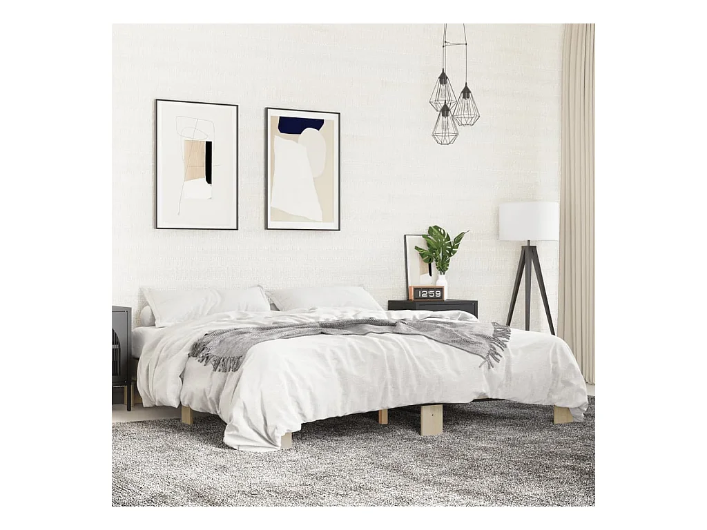 Lit double chêne sonoma 160x200 cm bois d'ingénierie et métal FR55687
