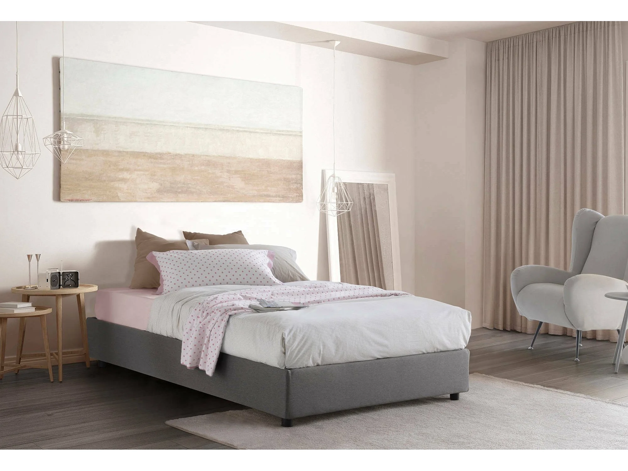 Lit double Chiara, Lit coffre avec revêtement en tissu, 100% Made in Italy, Ouverture frontale, avec matelas 120x190 cm inclus, Gris