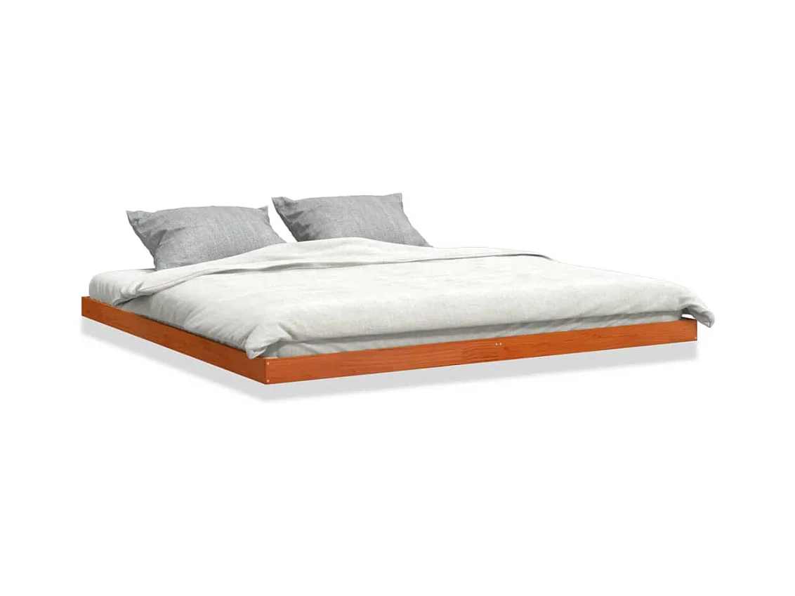 Lit double cire marron 200x200 cm bois de pin massif FR66821