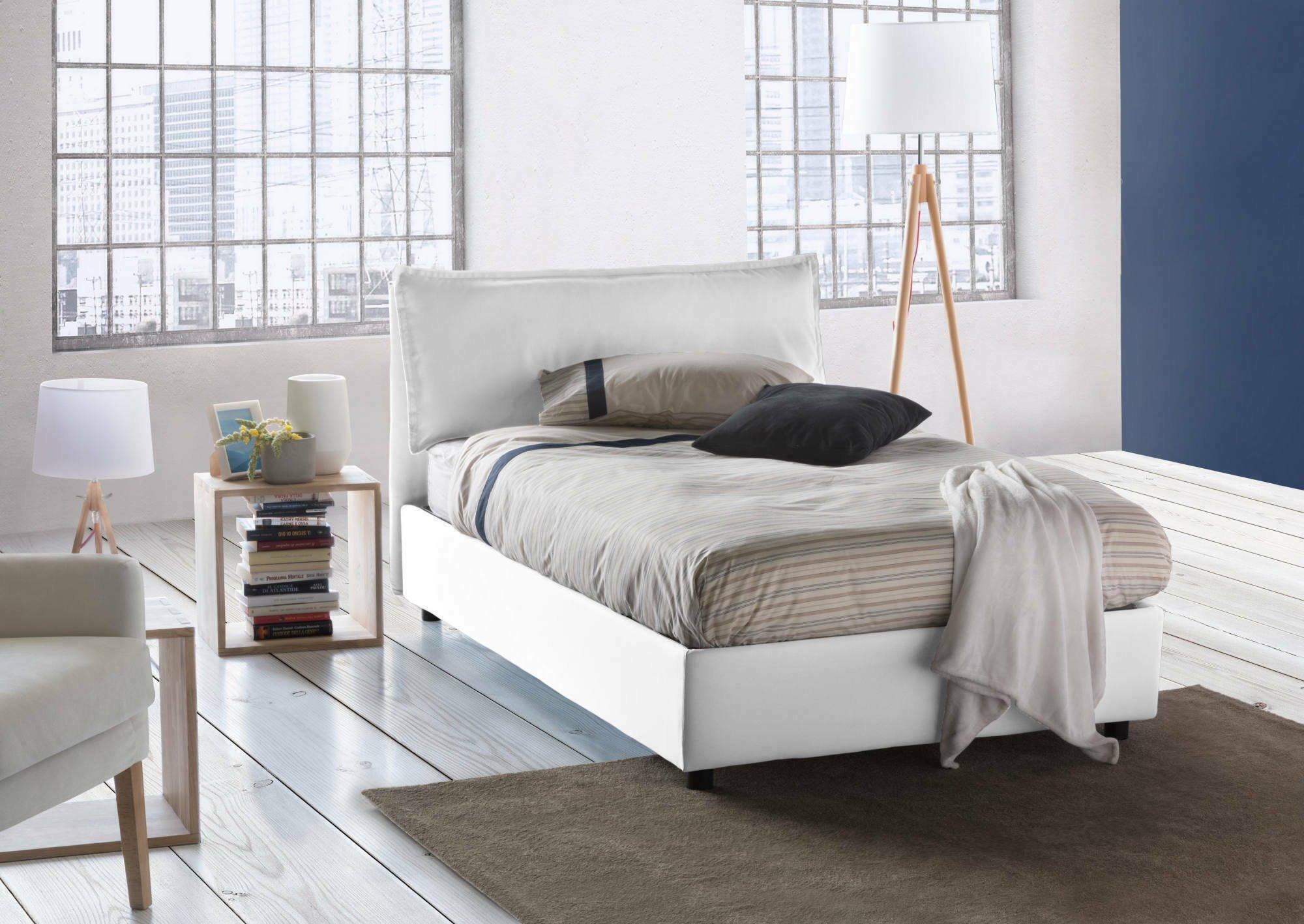 Lit double Assia, lit coffre avec revêtement en éco-cuir, 100% Made in Italy, ouverture frontale, adapté pour matelas 120x200 cm, blanc