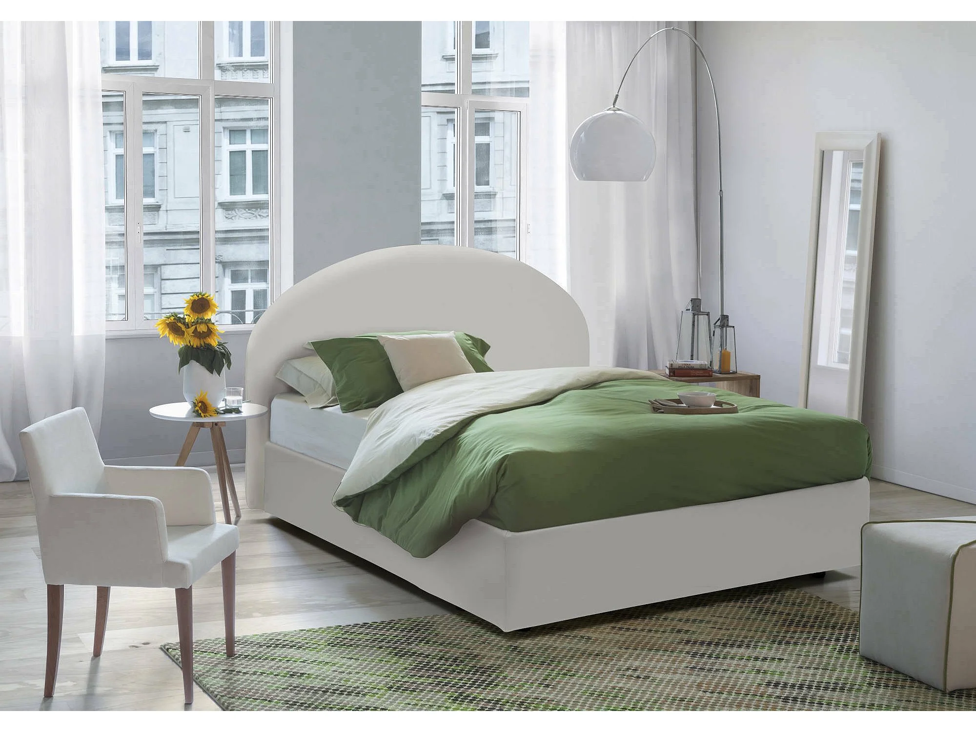 Lit double Consolata, Lit coffre avec revêtement en éco-cuir, 100% Made in Italy, Ouverture frontale, avec matelas 160x190 cm inclus, Blanc