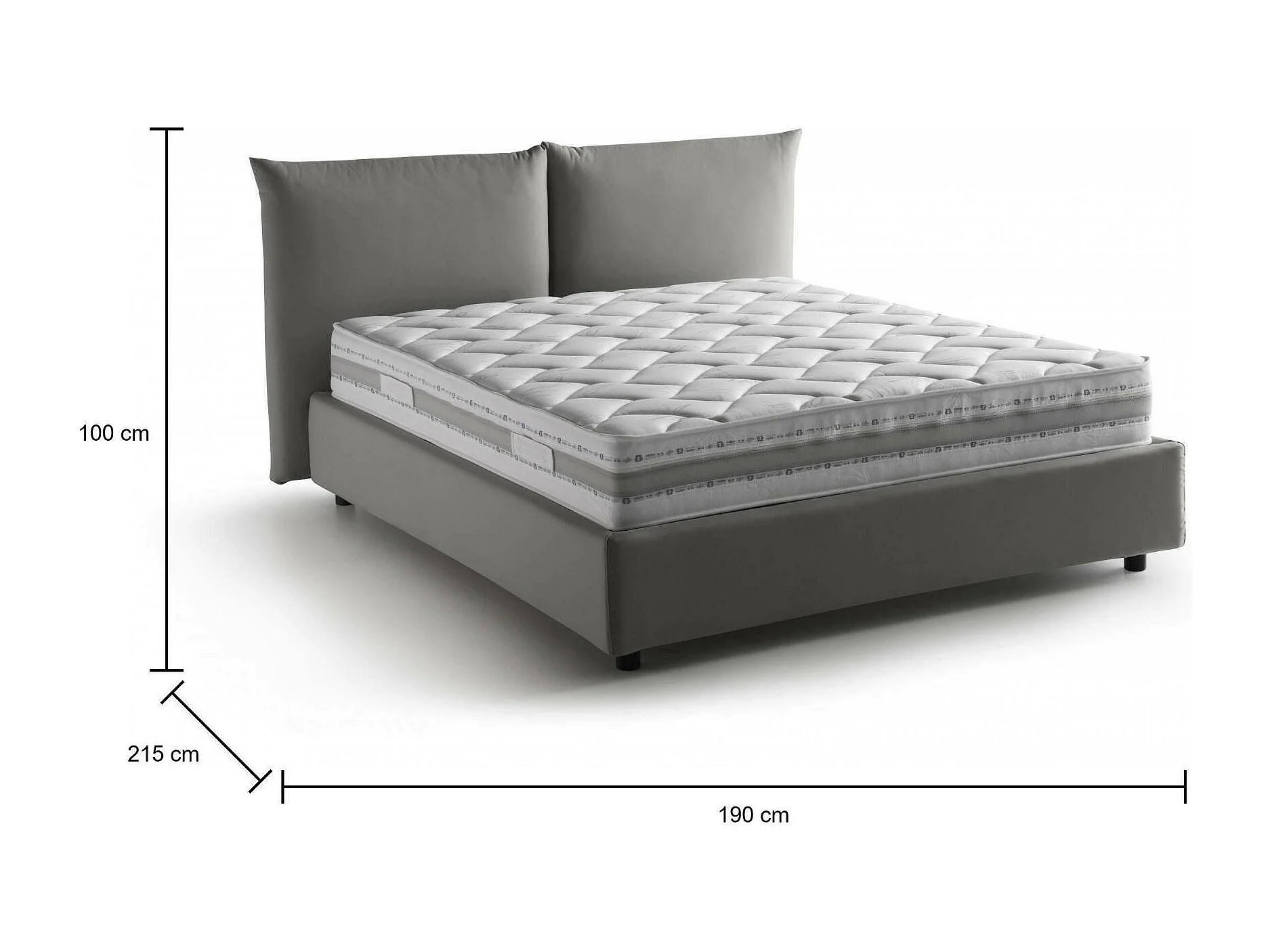 Lit double Cristel, Lit coffre avec revêtement en tissu, 100% Made in Italy, Ouverture frontale, avec matelas 160x190 cm inclus, Gri