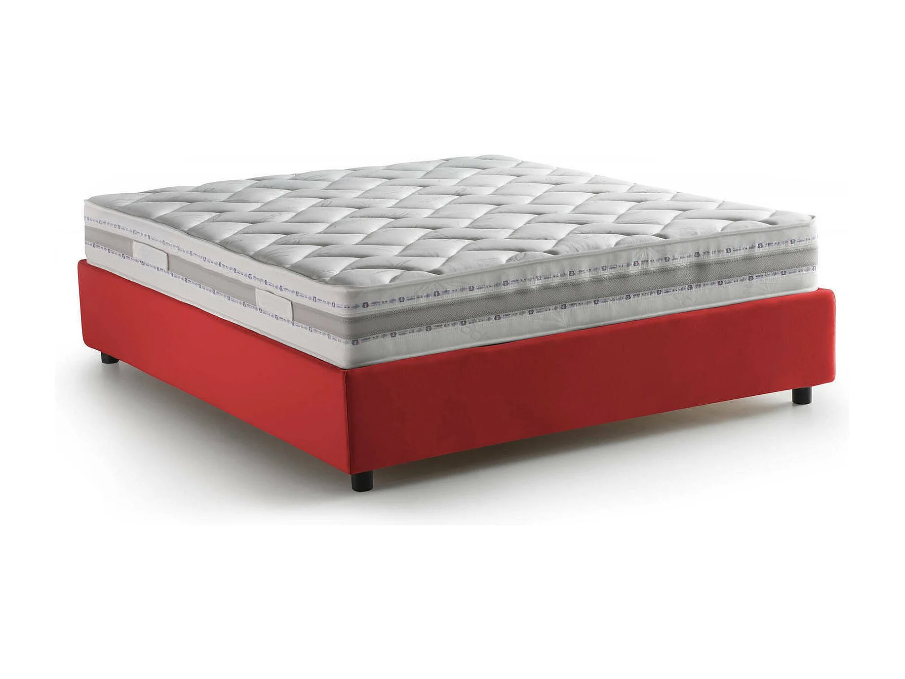Lit double Daajj, Lit coffre avec revêtement en tissu, 100% Made in Italy, Ouverture frontale, avec matelas 140x190 cm inclus, Rouge