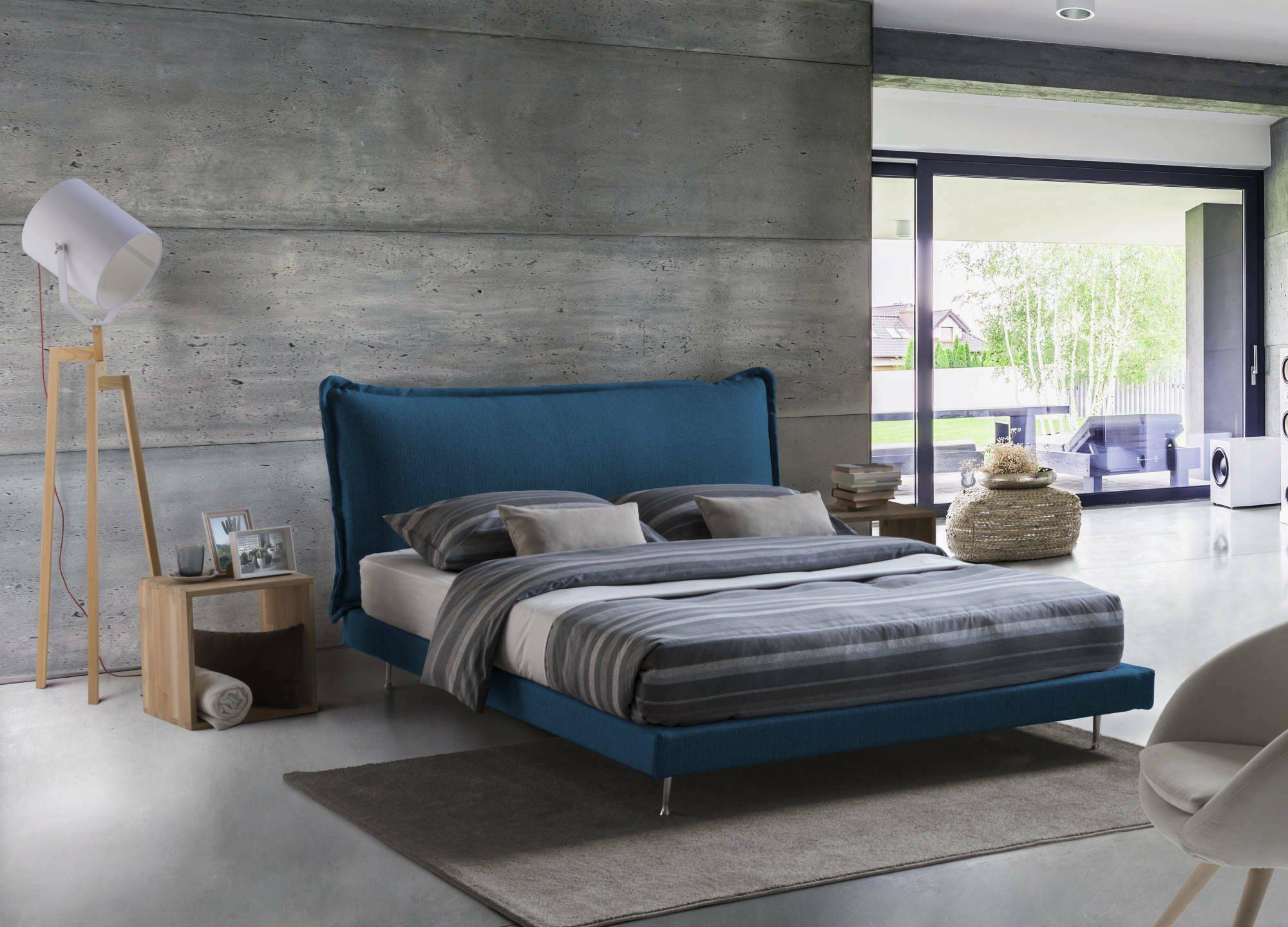 Lit double Dferron, Lit fixe en tissu avec pieds, 100% Made in Italy, adapté pour matelas 160x190 cm, Bleu