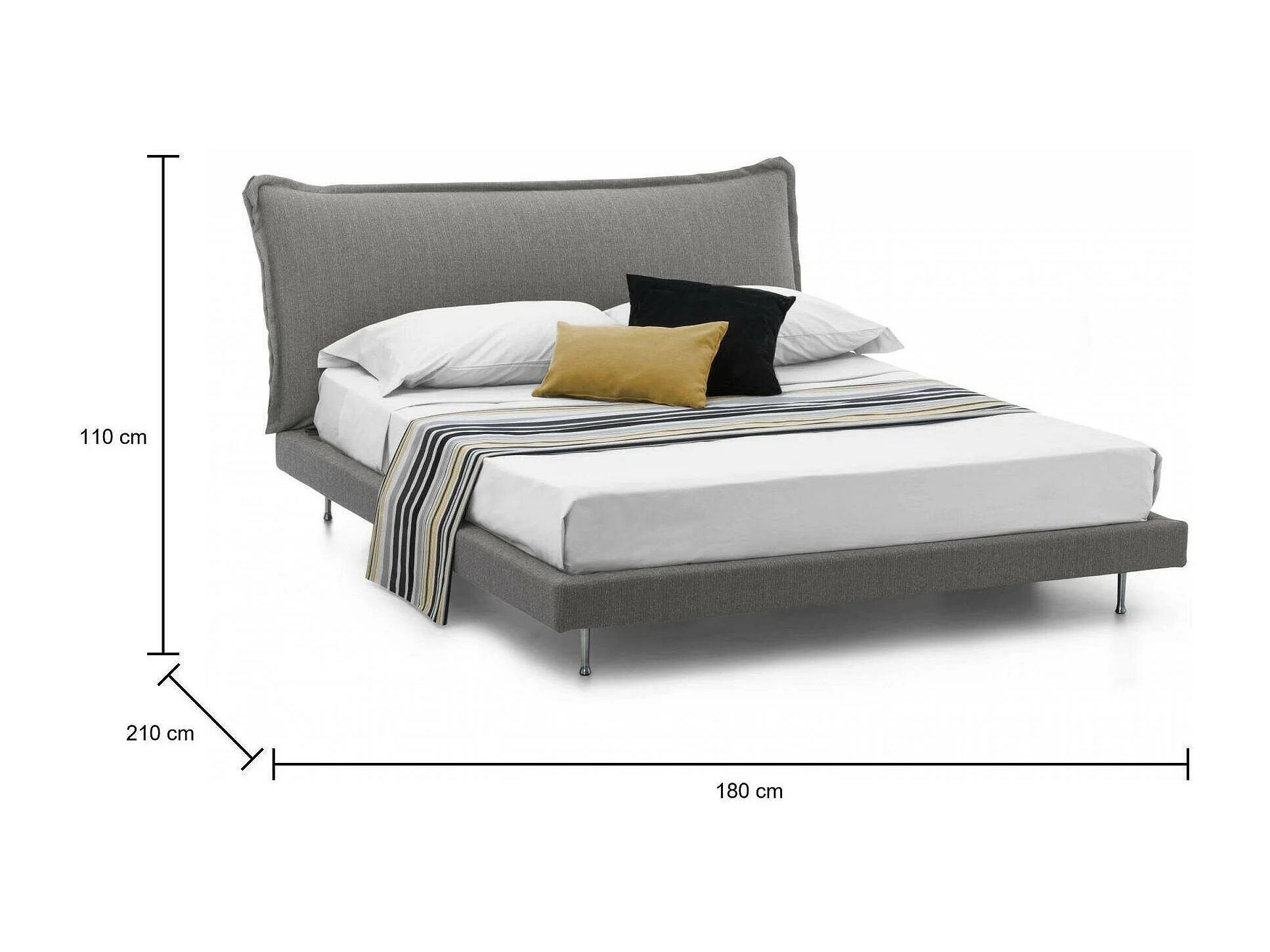 Lit double Dabbat, Lit fixe avec revêtement et tête de lit en tissu, 100% Made in Italy, adapté pour matelas 160x190 cm, Gris