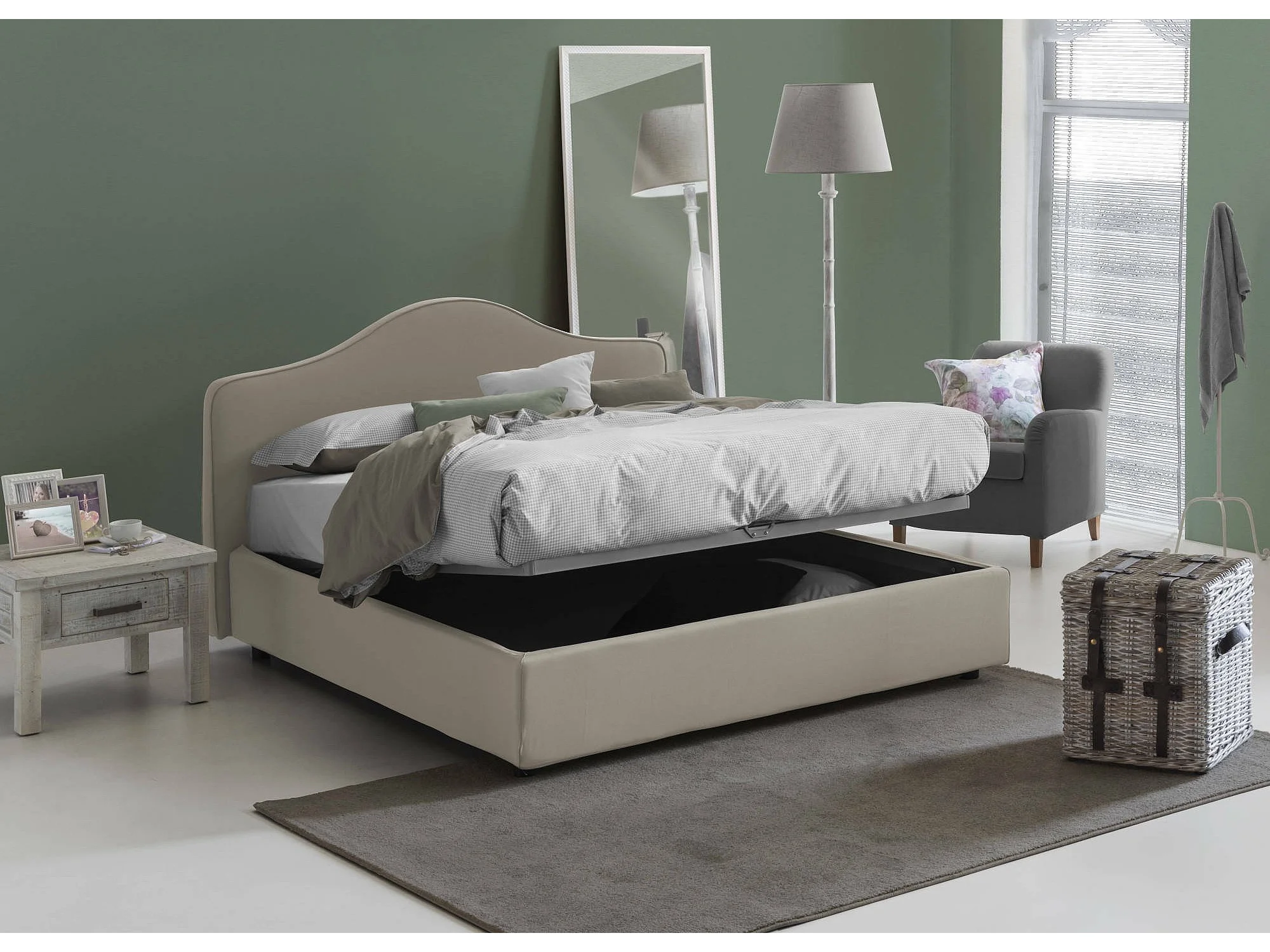Lit double Dabda, Lit coffre avec revêtement en tissu, 100% Made in Italy, Ouverture frontale, avec matelas 160x190 cm inclus, Taupe