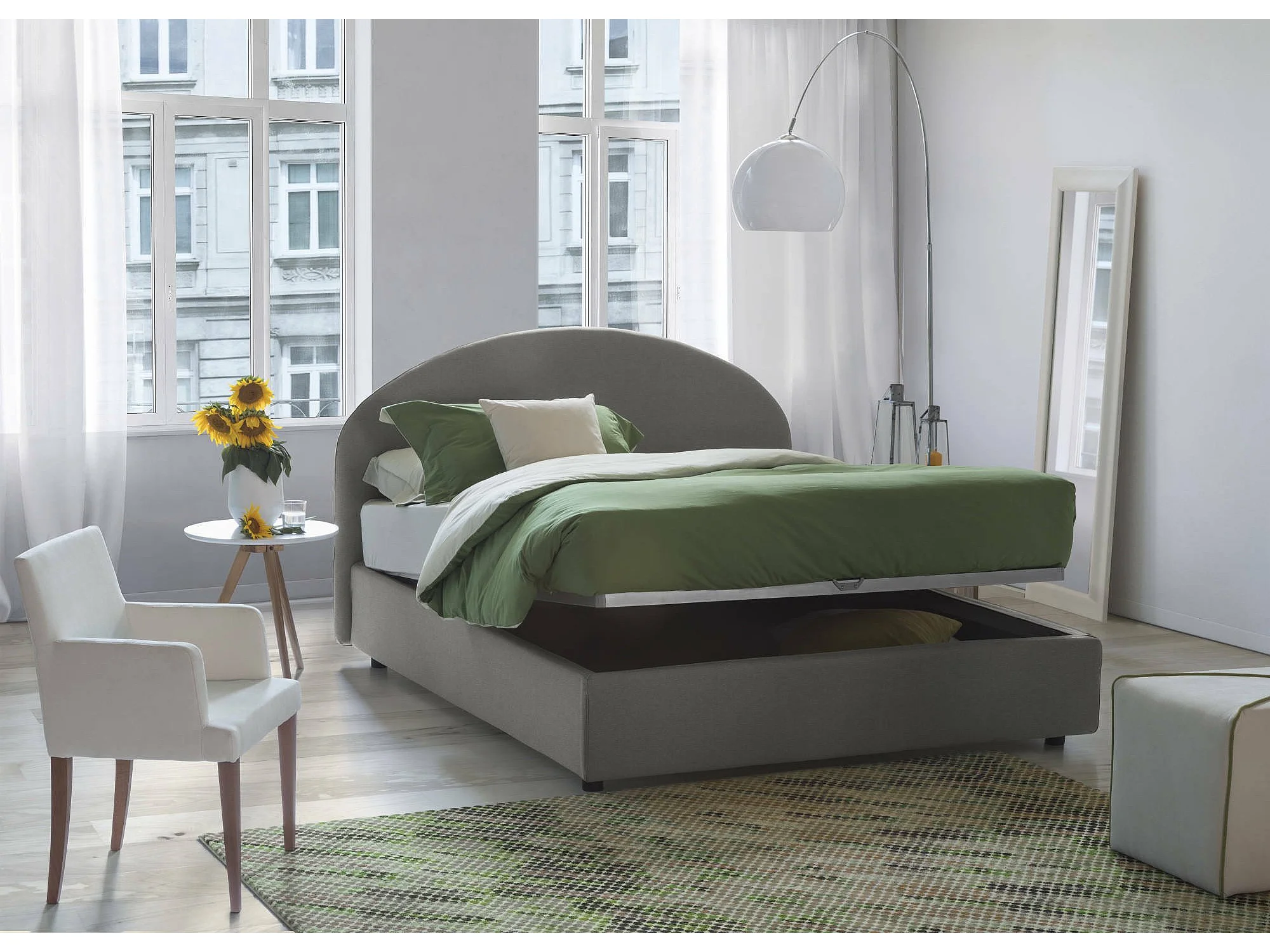 Lit double Dadamol, Lit coffre avec revêtement en tissu, 100% Made in Italy, Ouverture frontale, avec matelas 160x200 cm inclus, Gris