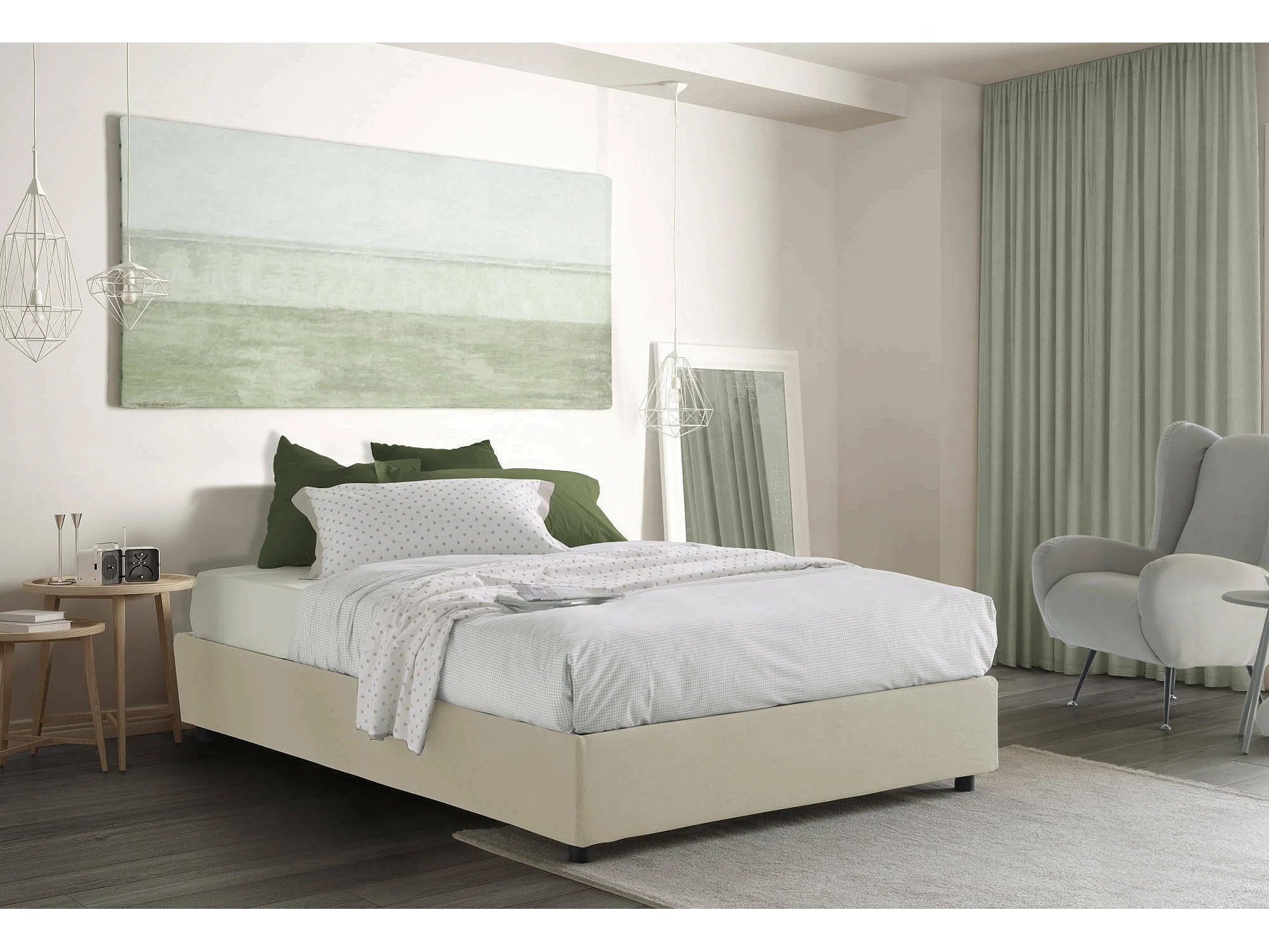 Lit double Dagazz, Lit coffre avec revêtement en tissu, 100% Made in Italy, Ouverture frontale, adapté pour matelas 140x190 cm, Beige