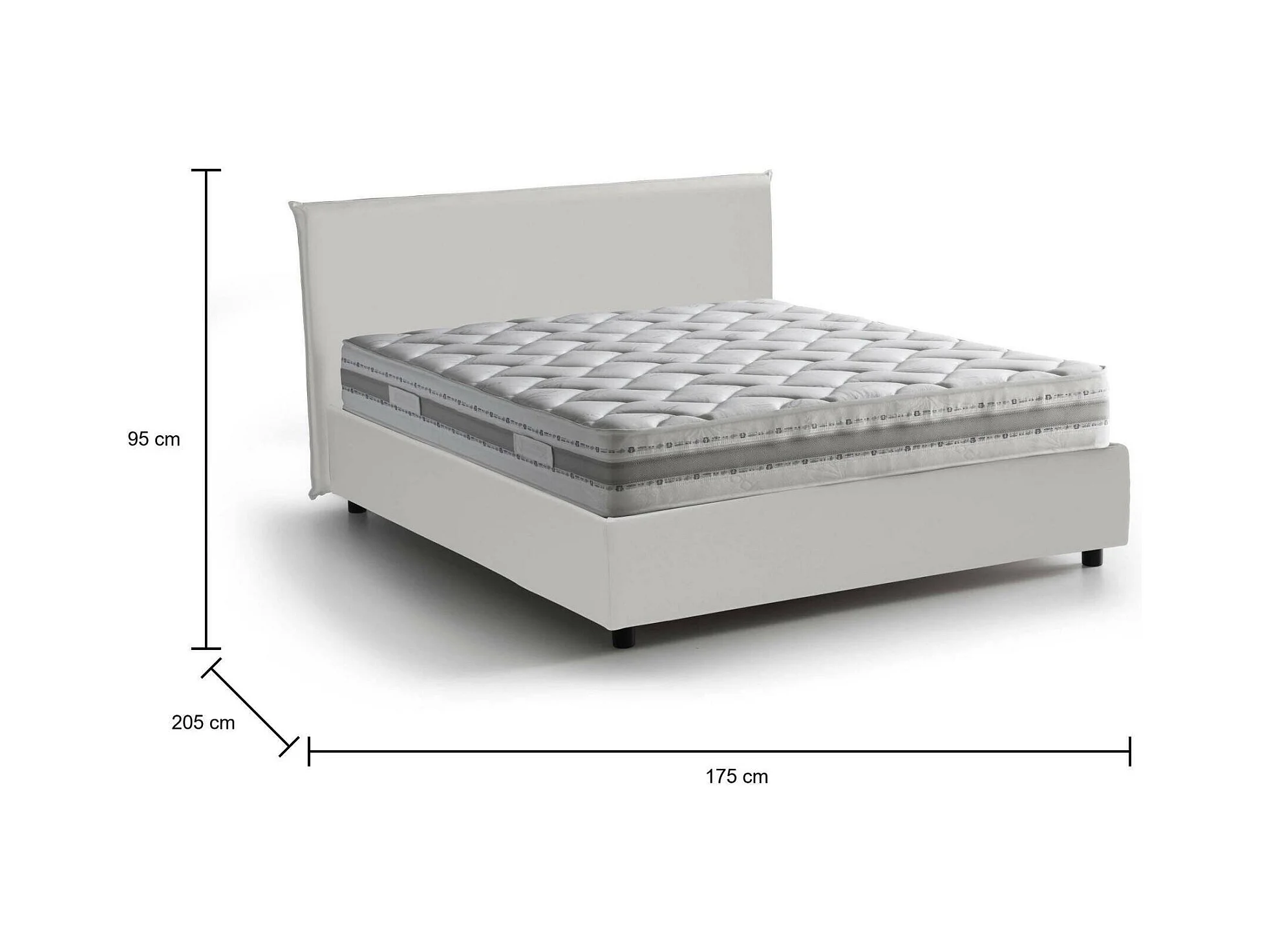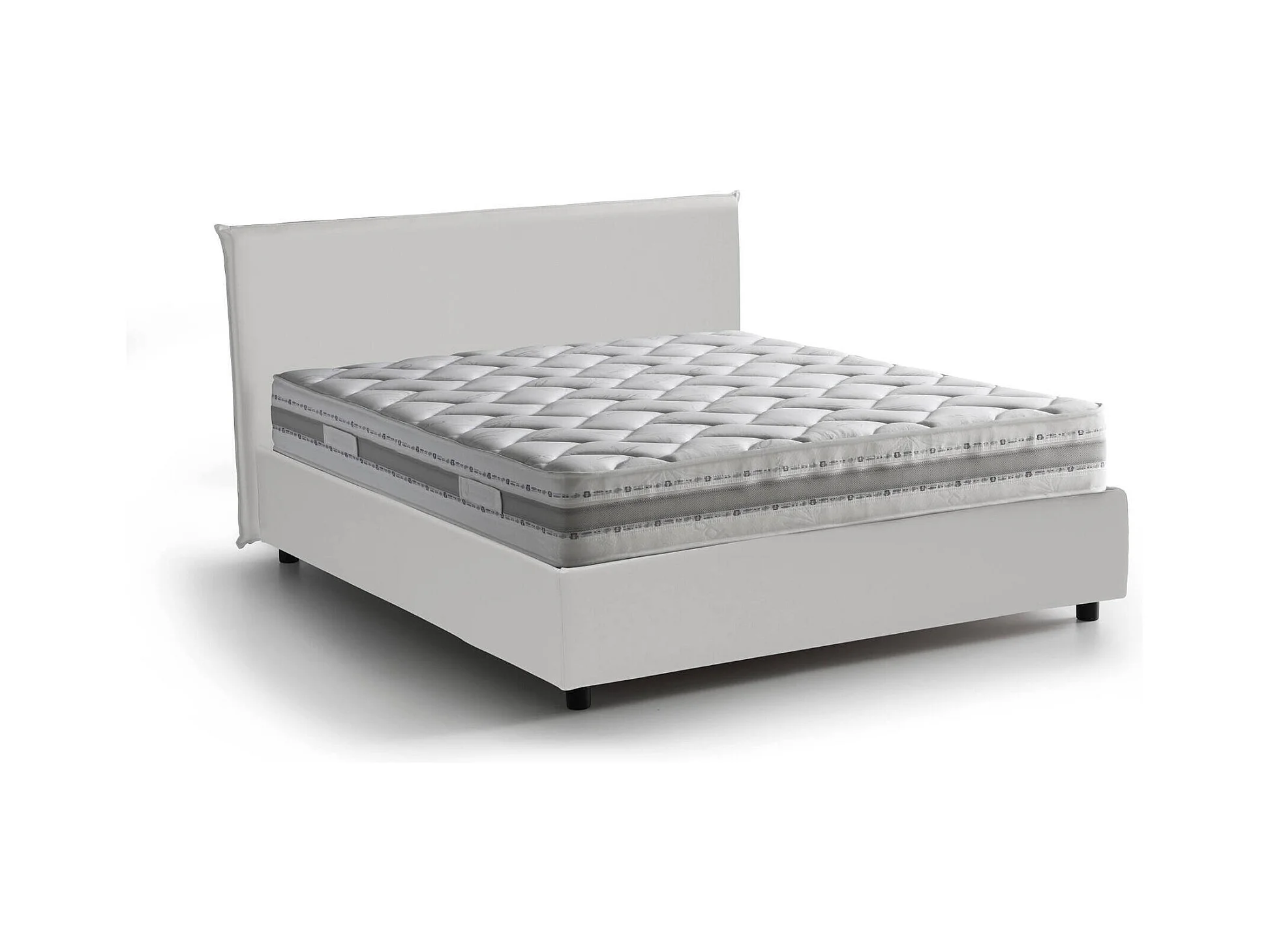 Lit double Dbeca, Lit coffre et tête de lit en éco-cuir, 100% Made in Italy, Ouverture frontale, Blanc, avec matelas 160x190 cm inclus