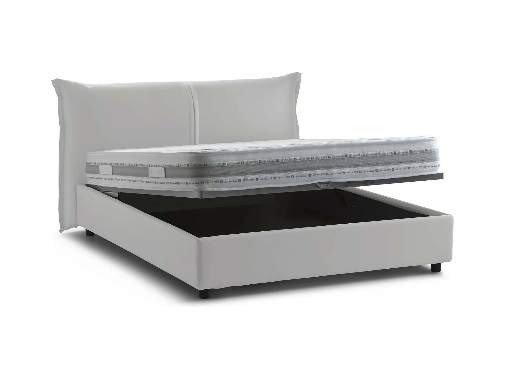 Lit double Darabon, Lit coffre avec revêtement en tissu, 100% Made in Italy, Ouverture frontale, adapté pour matelas 160x190 cm, Blanc