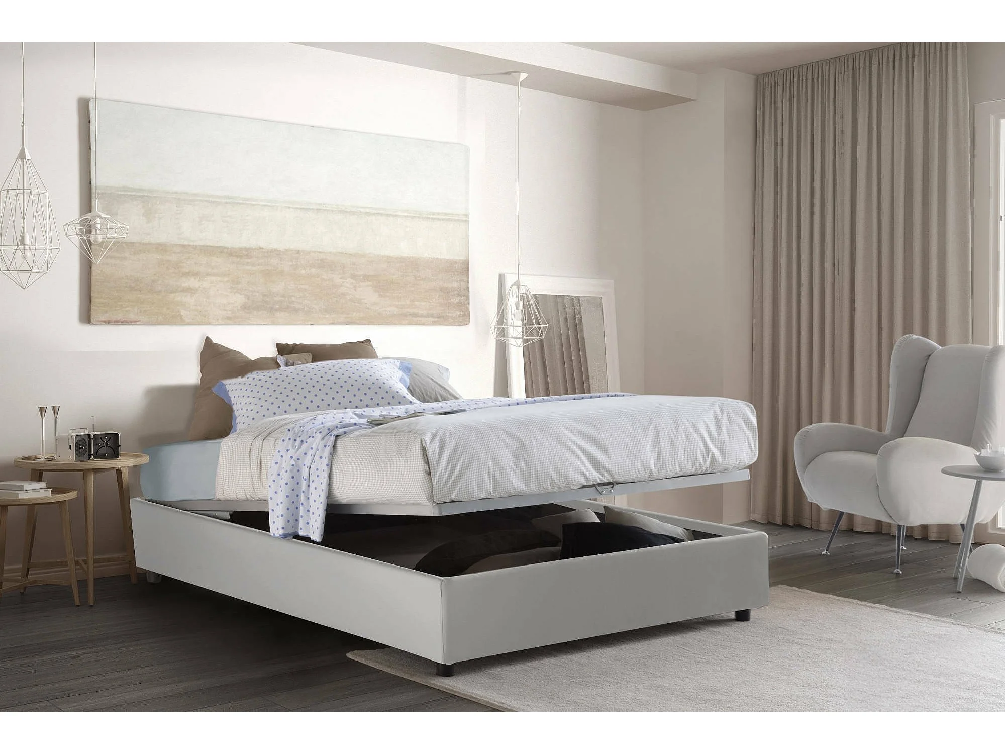 Lit double Dbaci, Lit coffre avec revêtement en éco-cuir, 100% Made in Italy, Ouverture frontale, avec matelas 160x190 cm inclus, Blanc