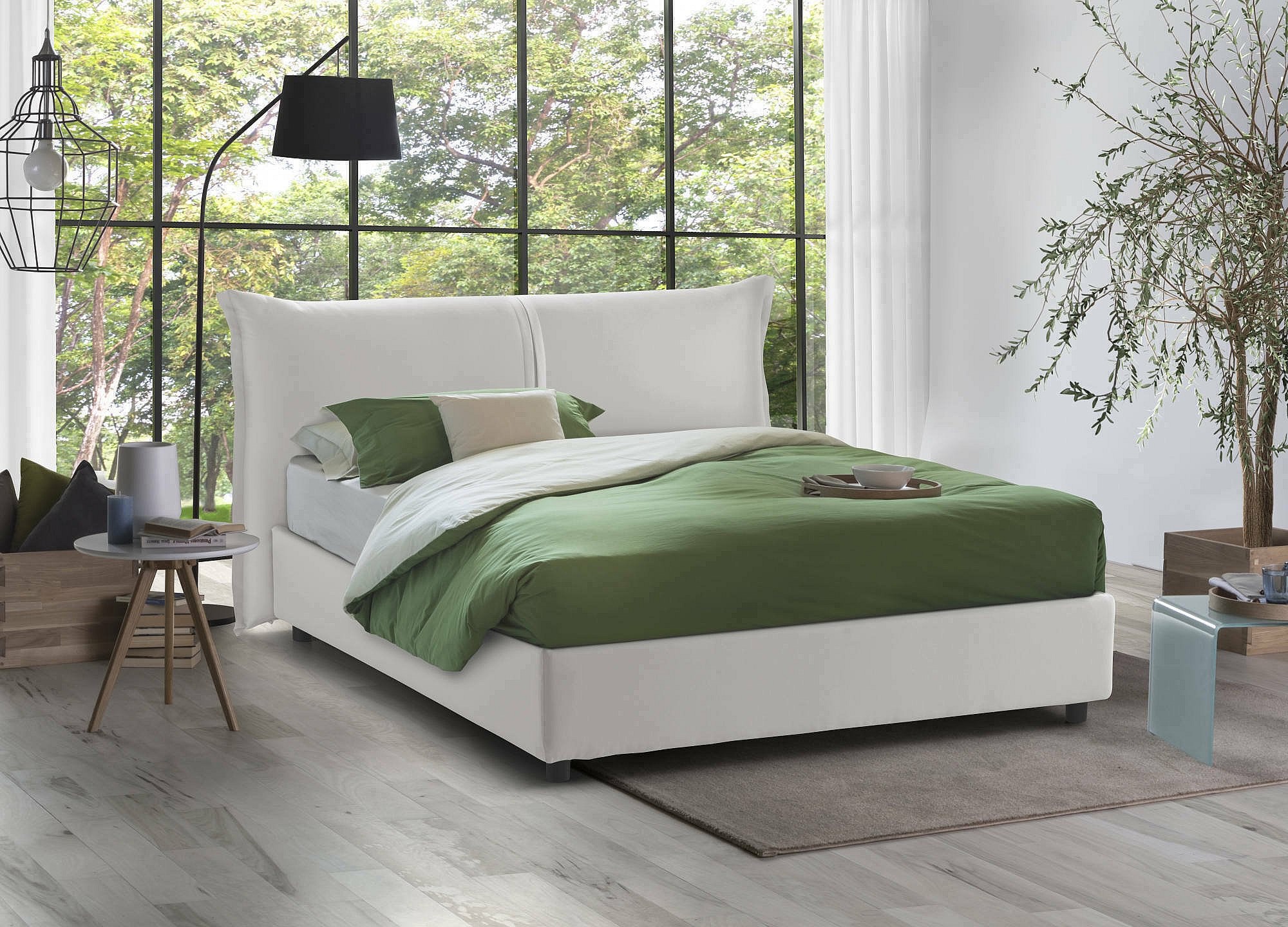 Lit double Dbombag, Lit coffre avec revêtement en éco-cuir, 100% Made in Italy, Ouverture frontale, avec matelas 160x190 cm inclus, Blanc