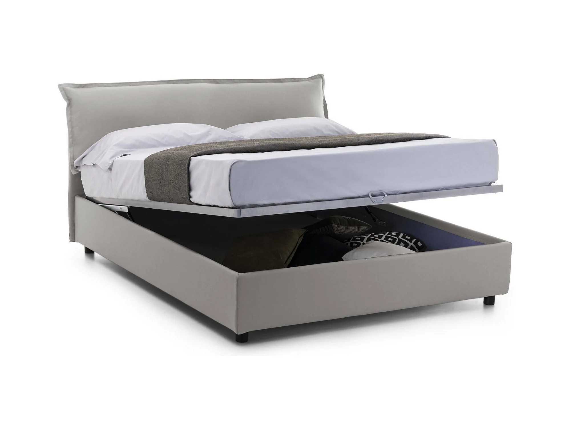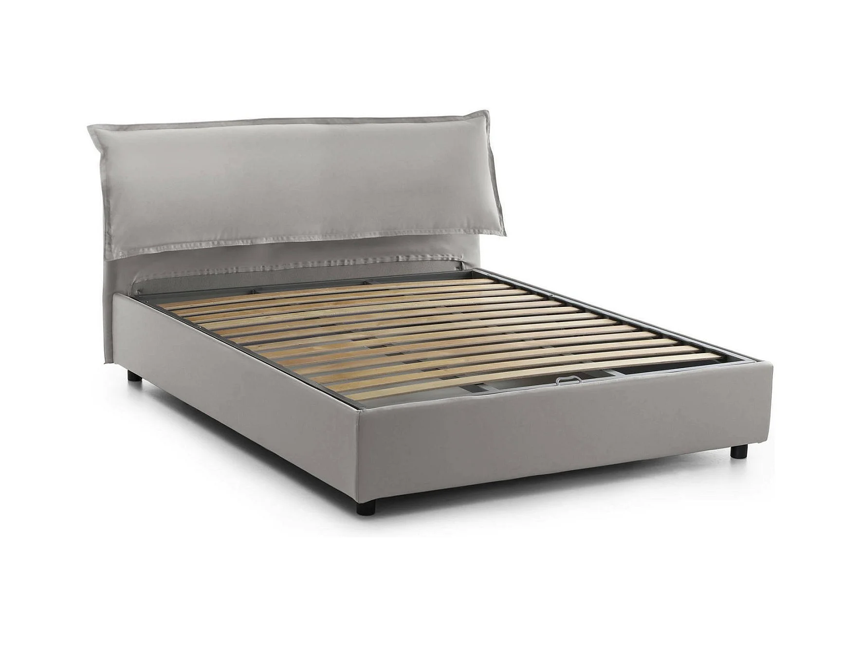 Lit double Dbiand, Lit coffre déhoussable avec tête de lit rembourrée et cadre de lit coffre, 100% Made in Italy, adapté pour matelas 160x200 cm, Gris