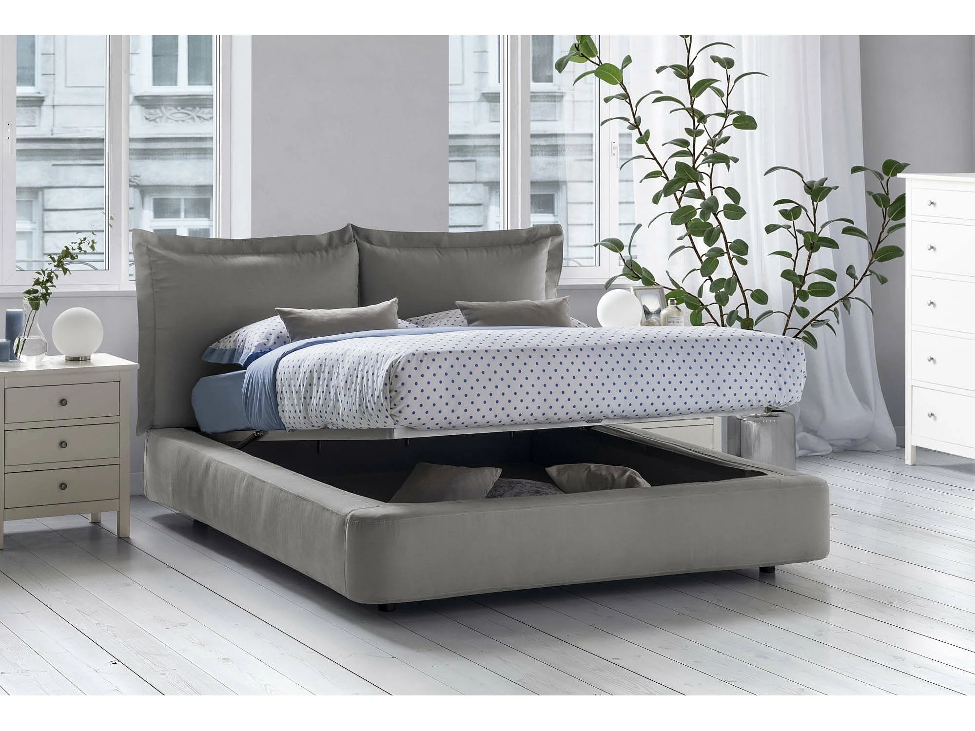 Lit double Dbonn, Lit coffre avec revêtement en tissu, 100% Made in Italy, Ouverture frontale, adapté pour matelas 160x190 cm, Gris