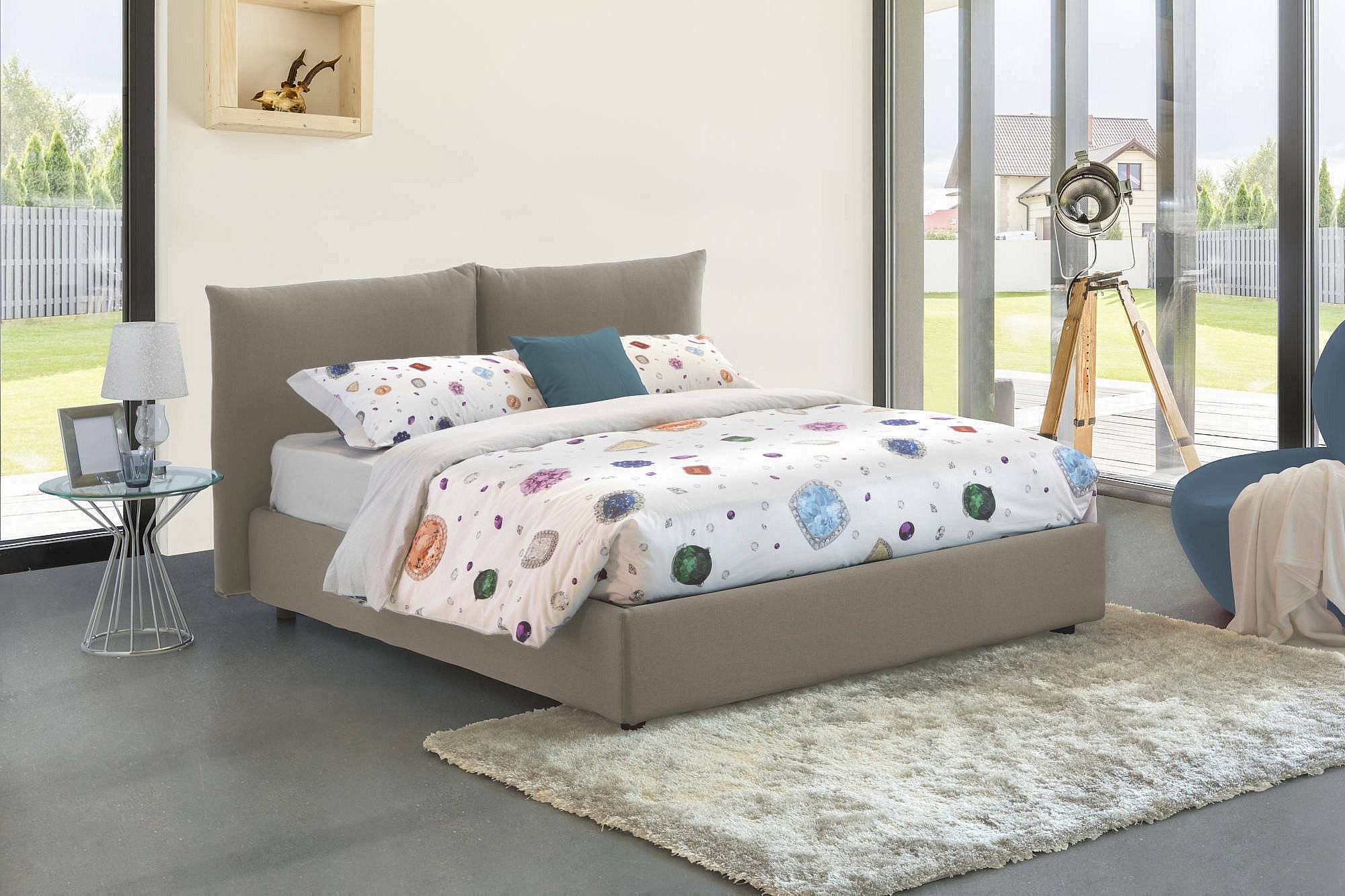 Lit double Dbombag, Lit coffre avec revêtement en éco-cuir, 100% Made in Italy, Ouverture frontale, avec matelas 160x190 cm inclus, Taupe