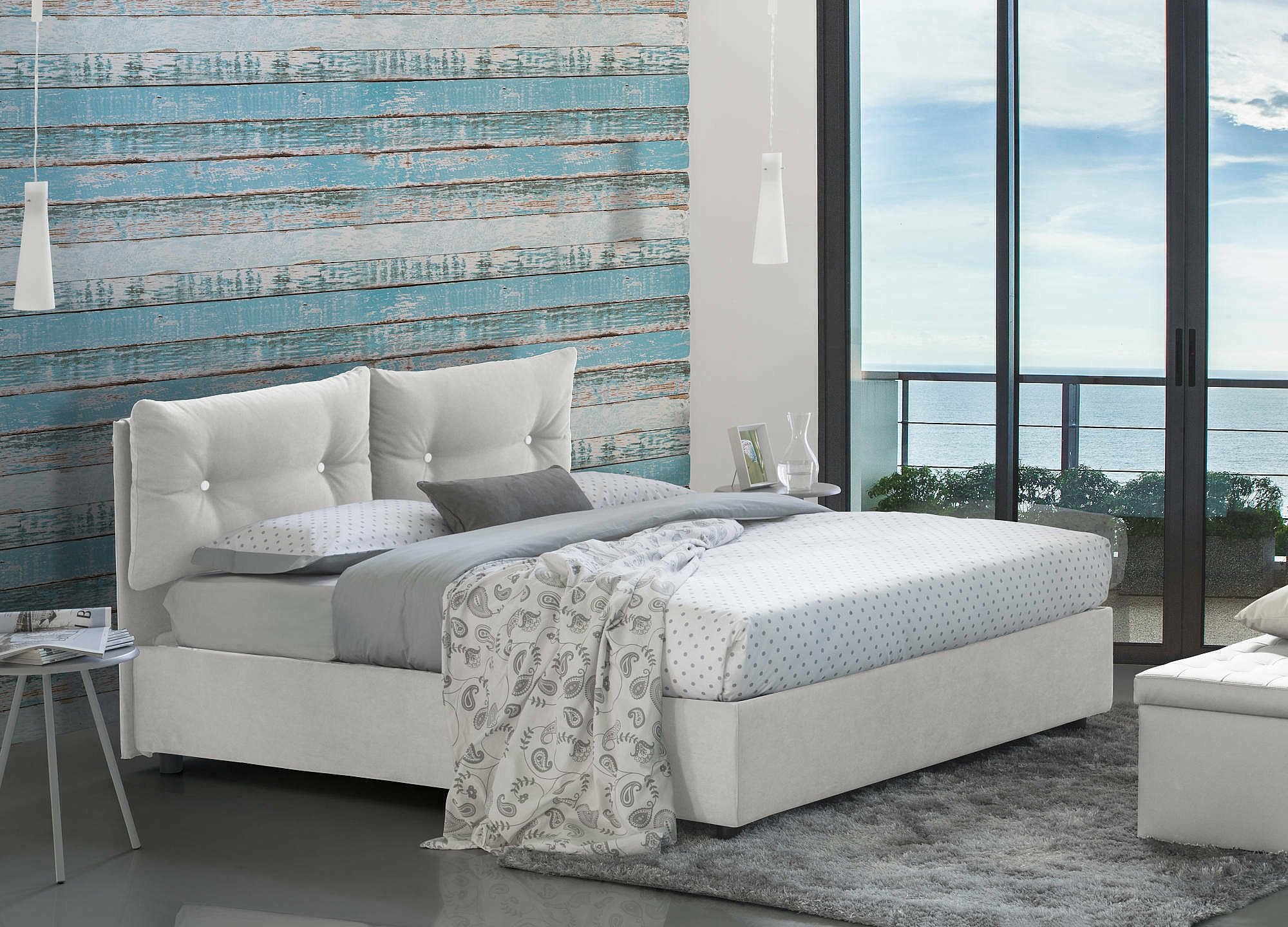Lit double Dbonade, Lit coffre avec revêtement en tissu, 100% Made in Italy, Ouverture frontale, adapté pour matelas 160x190 cm, Blanc