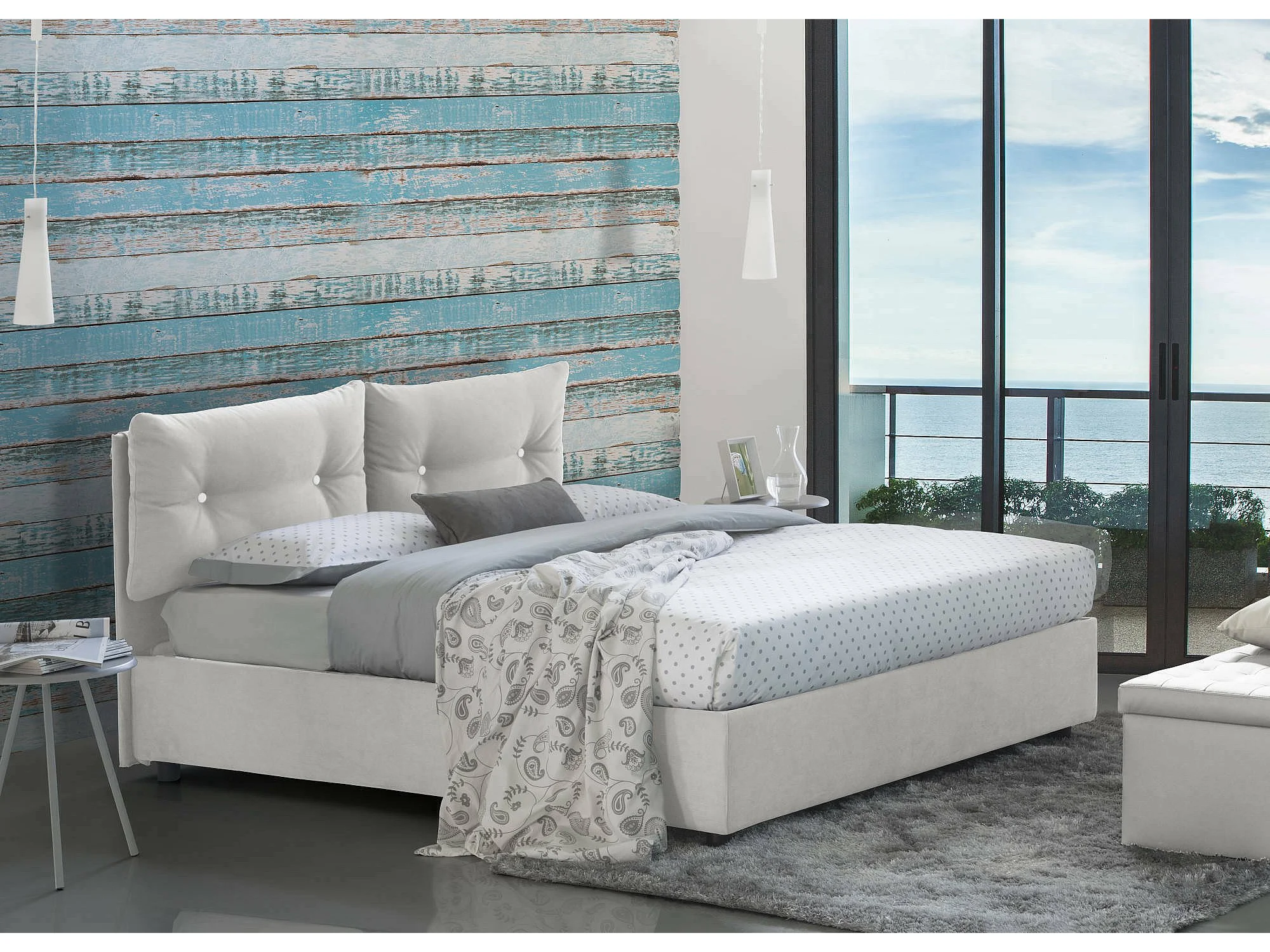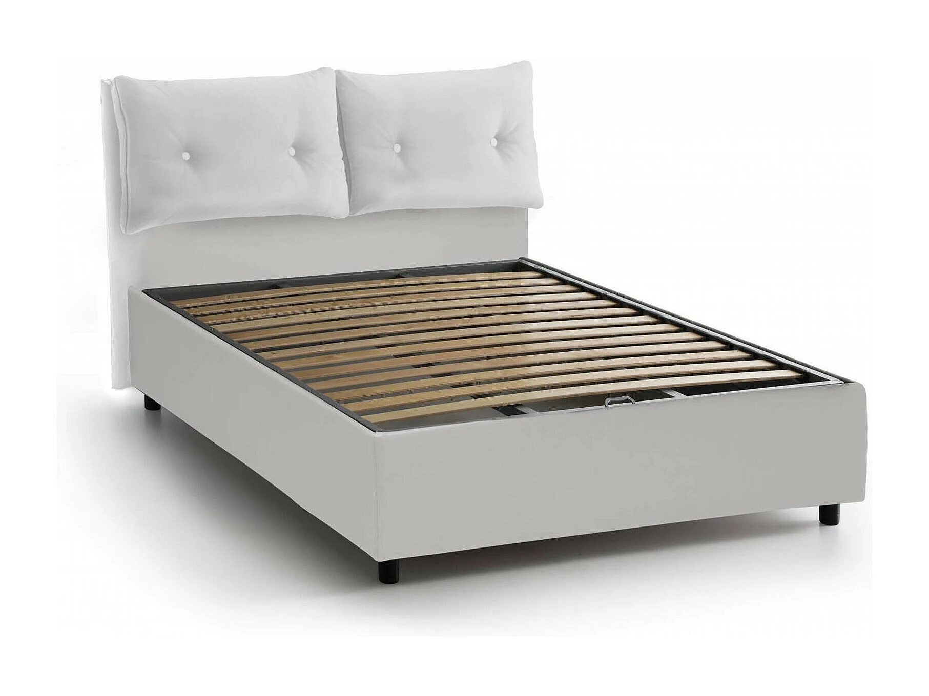 Lit double Dcun, Lit coffre avec revêtement en tissu, 100% Made in Italy, Ouverture frontale, adapté pour matelas 160x200 cm, Blanc