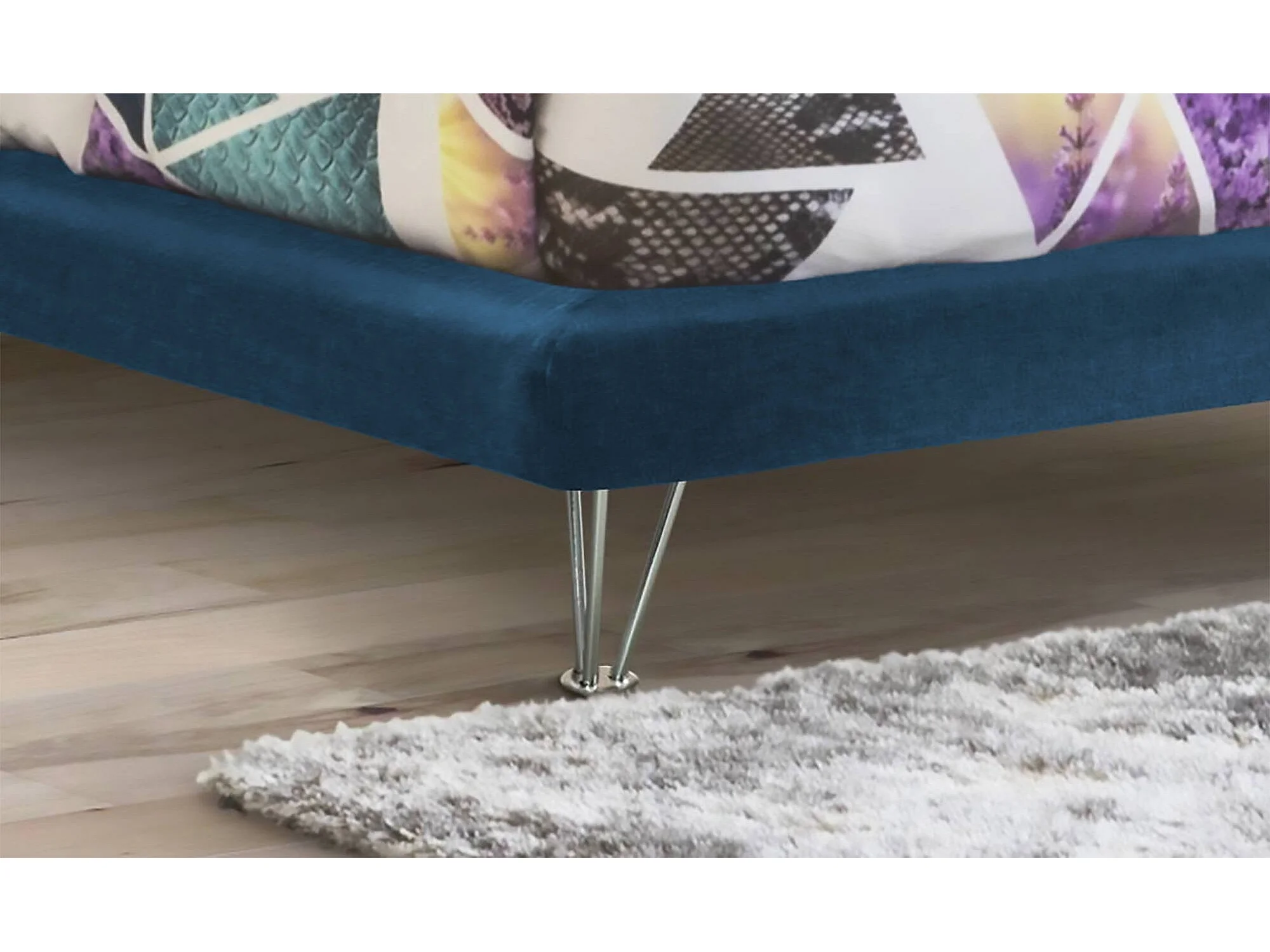 Lit double Dferron, Lit fixe en tissu avec pieds, 100% Made in Italy, adapté pour matelas 160x190 cm, Bleu