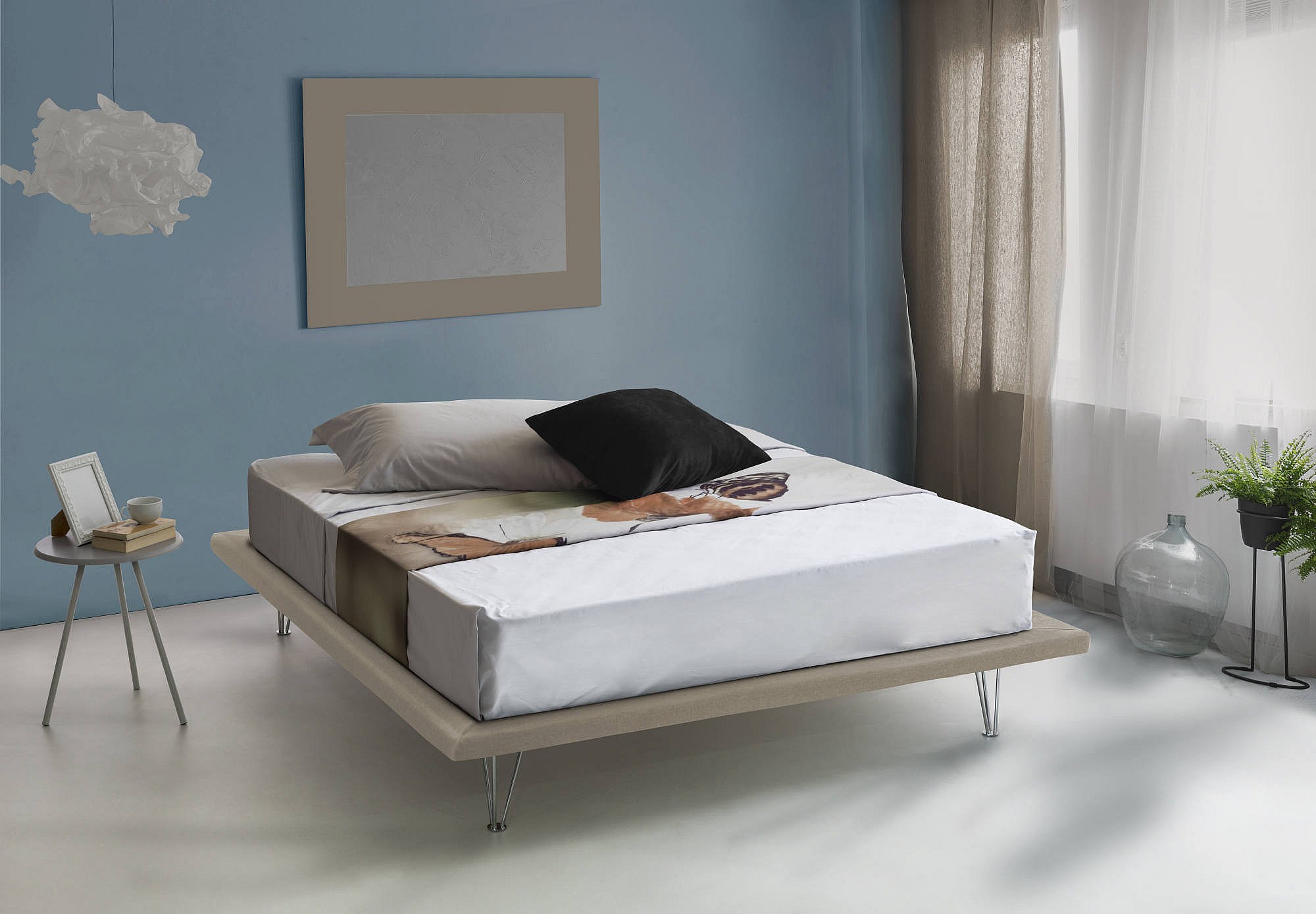 LIT DOUBLE - Lit fixe en tissu avec pieds, 100% Made in Italy, convient pour matelas cm 160x200, Beige.