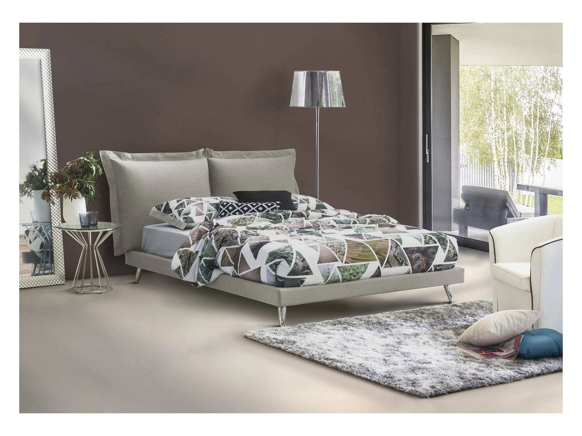 Lit double Dferron, Lit fixe en tissu avec pieds, 100% Made in Italy, adapté pour matelas 160x190 cm, Gris
