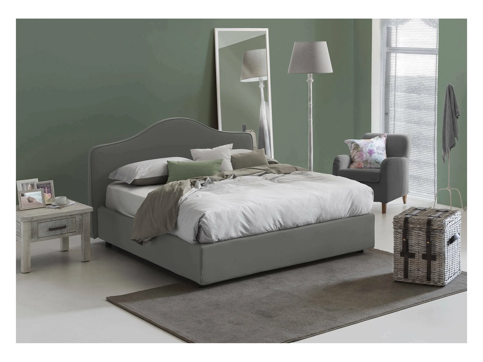 Lit double Djoci, Lit coffre avec revêtement en tissu, 100% Made in Italy, Ouverture frontale, avec matelas 160x200 cm inclus, Gris