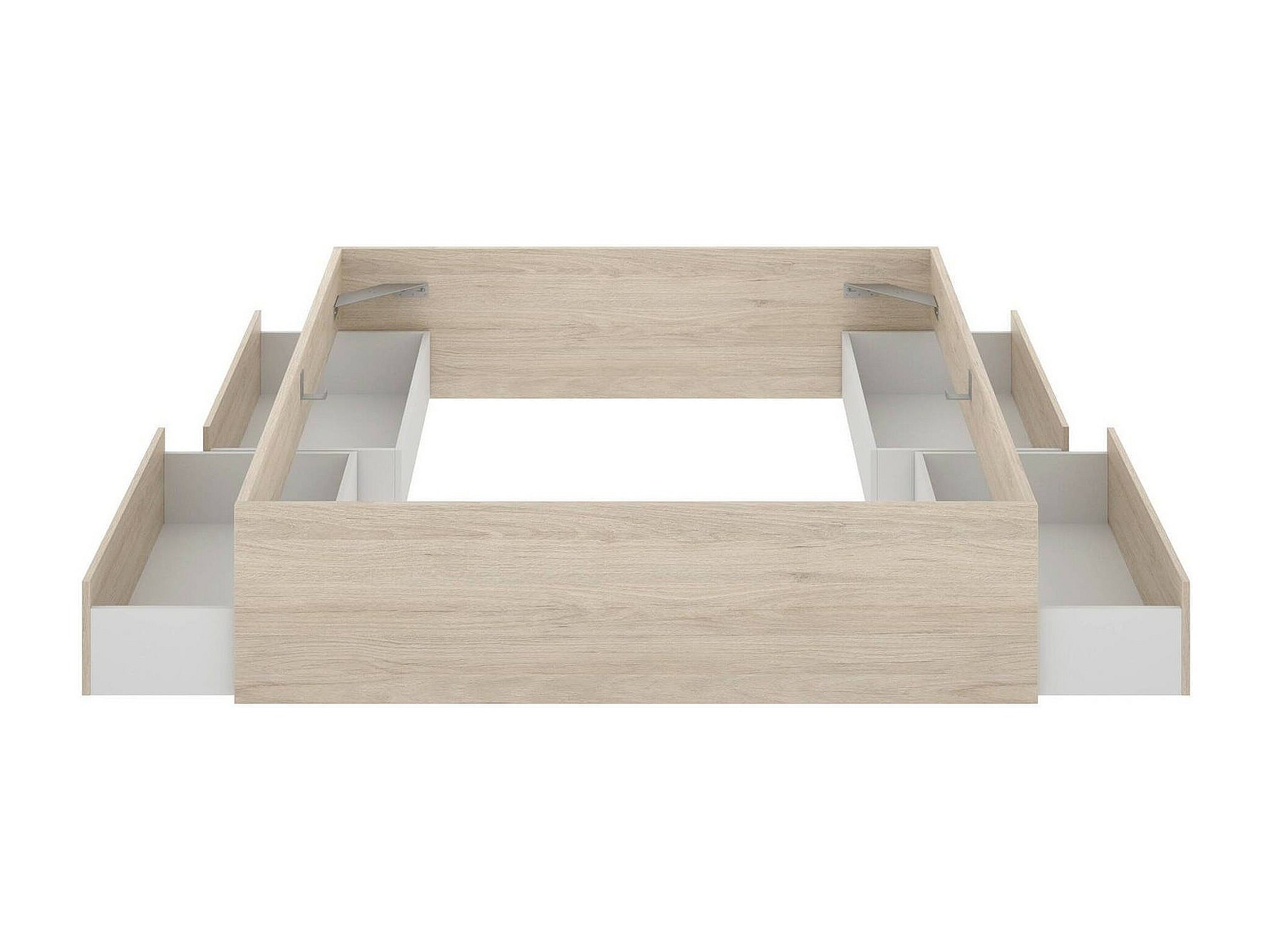 LIT DOUBLE - Sommier pour chambre, Literie par chambre, Support de matelas, 149x195 h39 cm, Chêne clair. STRUCTURE ET UTILISATION - La structure du lit est résistante et garantit un confort maximal - Idéale pour garantir un repos nocturne excellent et confortable, grâce au matériau de haute qualité et à la finition noble - Structure moderne et innovante, parfaite pour tout type de pièce ou de chambre à coucher. QUALITÉ ET DESIGN - Meuble au design moderne et élégant, parfait pour meubler un environnement contemporain et lumineux - Idéal pour ceux qui recherchent des solutions fonctionnelles et peu encombrantes, ce produit est parfait pour les maisons et les appartements de toutes tailles - Garantie de deux ans à compter de la date d'achat. CARACTÉRISTIQUES TECHNIQUES - Accessoire d'ameublement polyvalent, conçu pour une intégration facile avec d'autres meubles - Emballage résistant, conçu pour le commerce électronique - Matériau: Panneau mélaminé 16mm, Panneau mélaminé 22mm - Informations supplémentaires: Construit entièrement en panneaux de particules mélaminés, il résiste aux chocs et aux rayures et est durable dans le temps - Chants avec finition mélamine - Dos du meuble en panneau de fibres de moyenne densité - Classement selon la teneur ou le rejet de formaldéhyde de TYPE E1 - Cales en ABS anti-bruit et anti-rayures pour la partie basse du meuble - Avec quatre tiroirs, roulettes unidirectionnelles incluses - Convient pour un matelas et un sommier de 140x190 cm - Matelas non inclus - Sommier équipé de supports d'angle métalliques pour placer le lit sommier - Sommier profilé requis en métal, non inclus - Poids maximum supporté par tiroir : 12 Kg - Poids maximum supporté lit : 200 Kg. DIMENSIONS EN CM - Lit double : Longueur: 149,2 Largeur: 195 Hauteur: 39