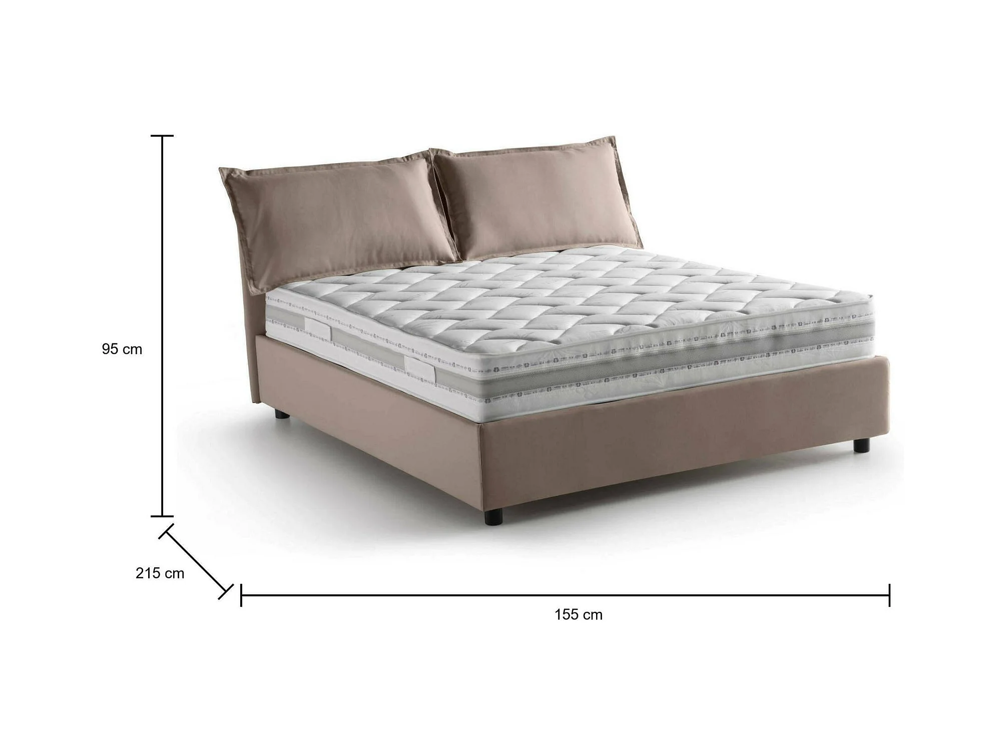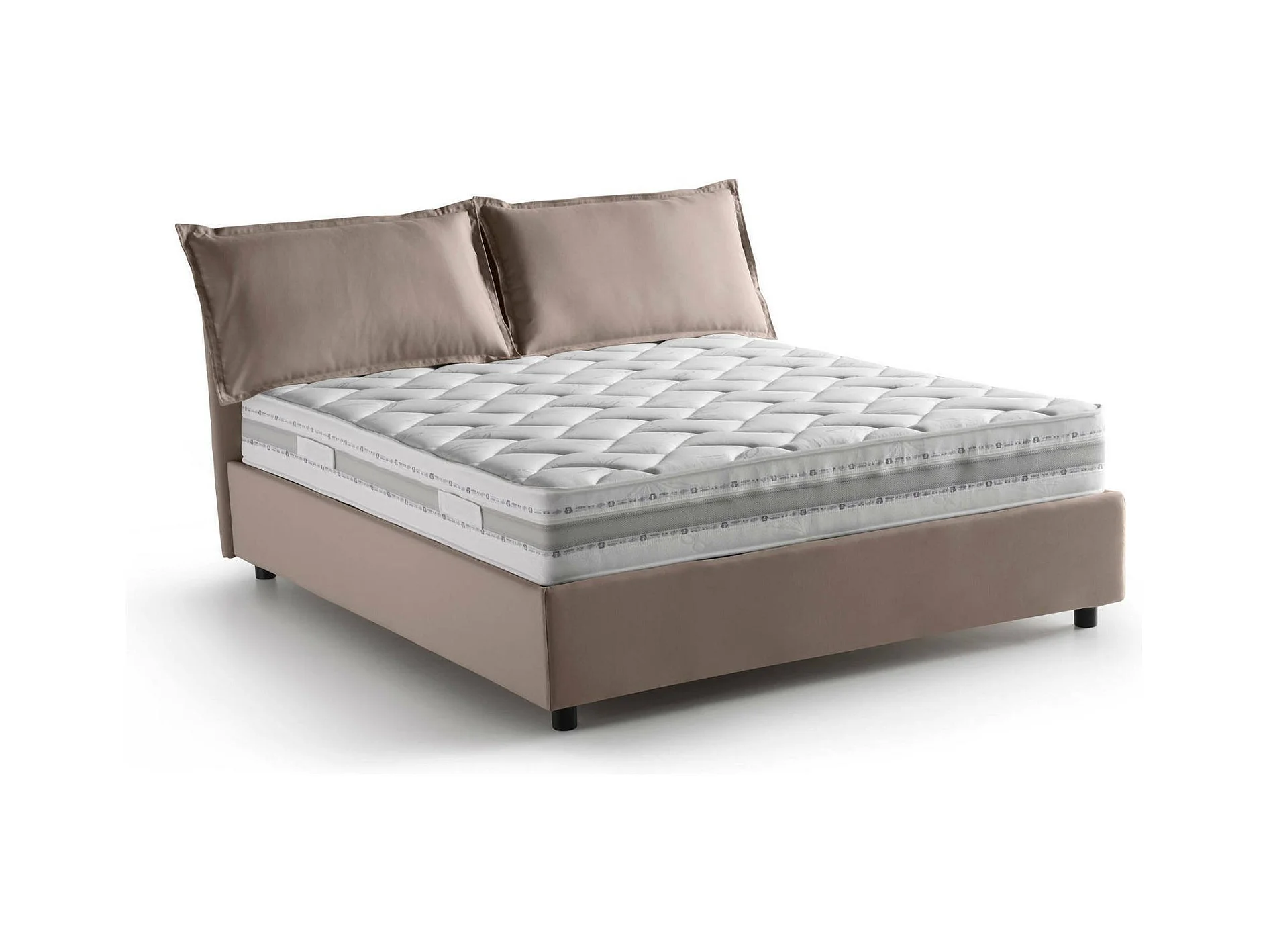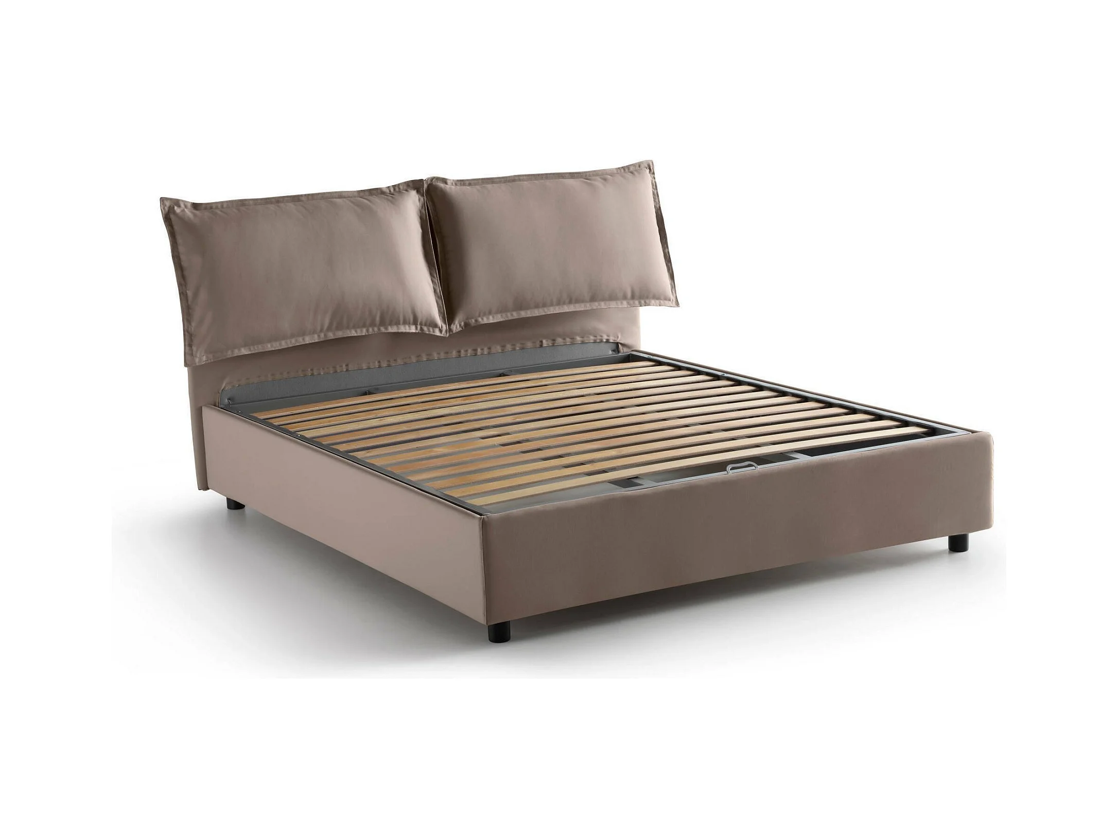 Lit double Dmircol, Lit coffre avec revêtement en tissu, 100% Made in Italy, Ouverture frontale, avec matelas 140x200 cm inclus, Taupe
