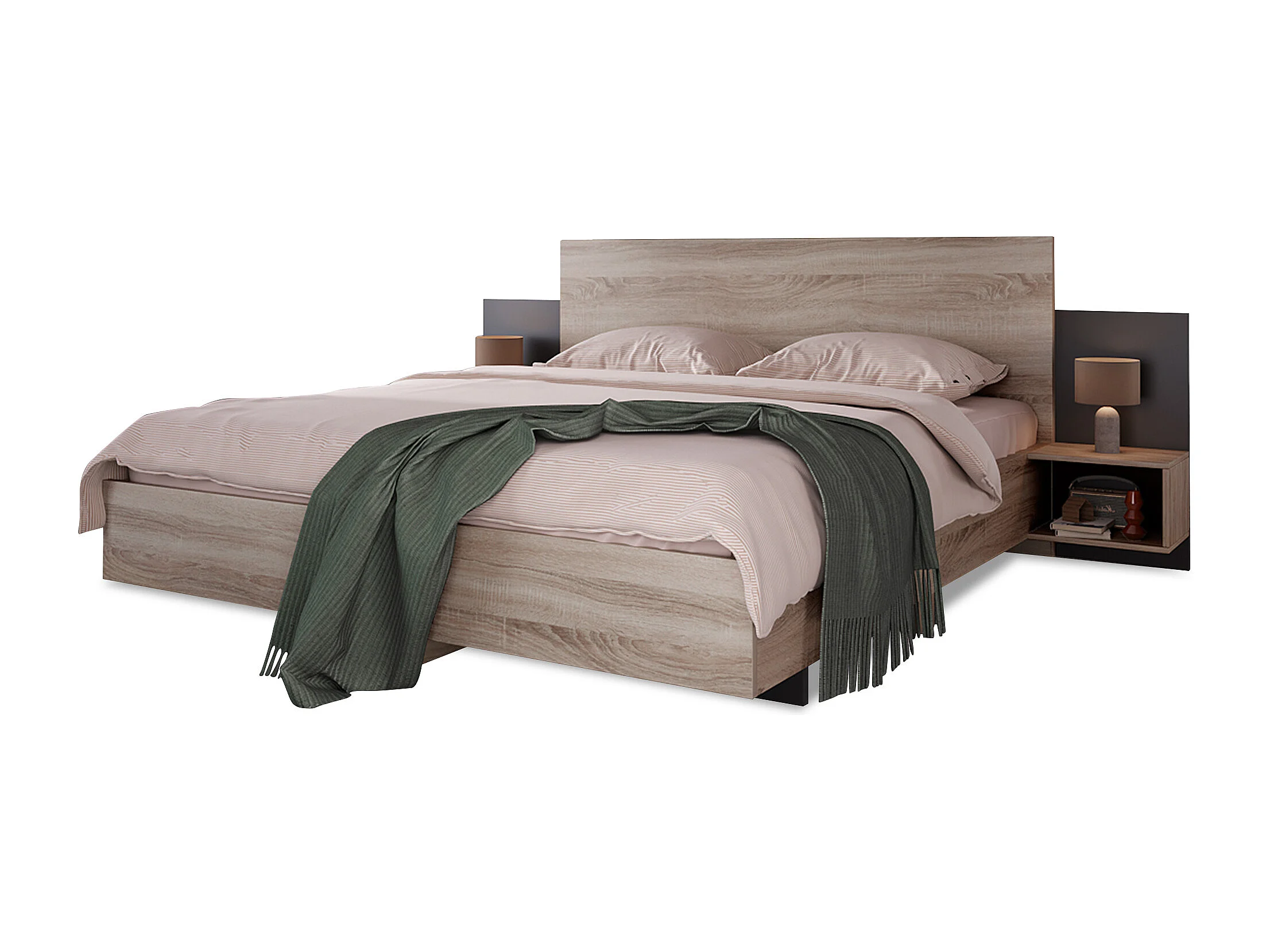 Lit adulte design 180x200 - Collection IZO. Coloris chêne et gris anthracite.