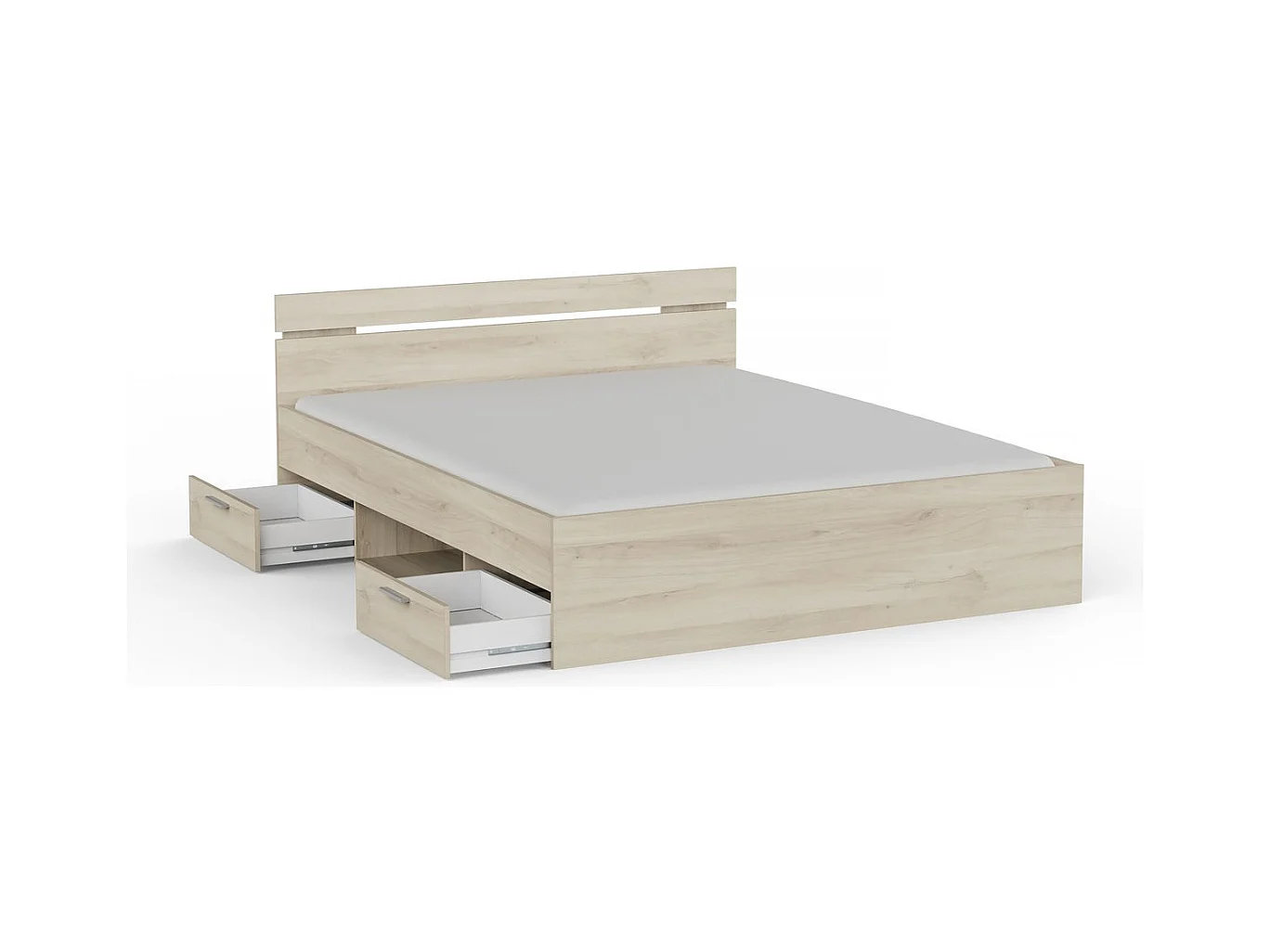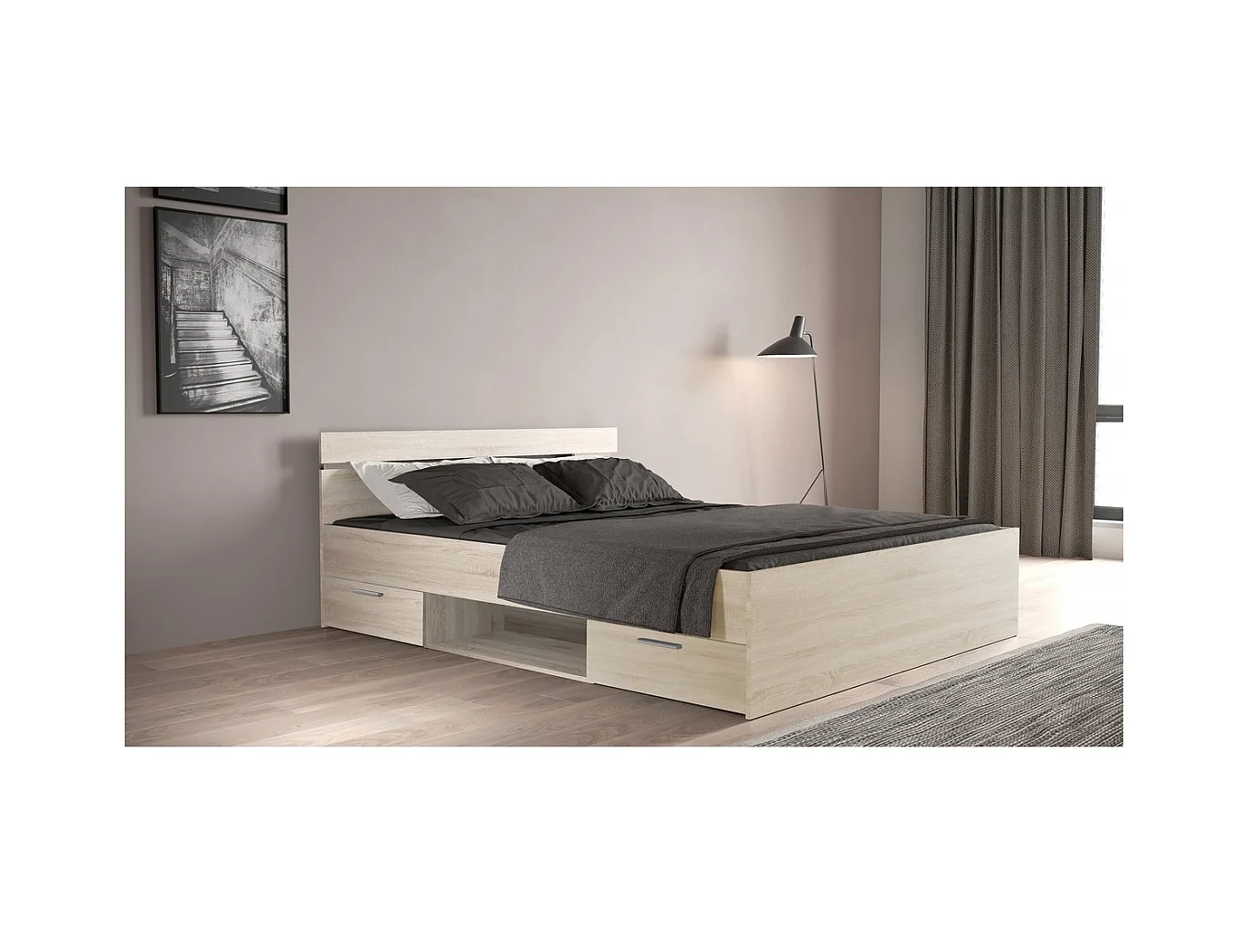 Lit 160 x 200 cm avec rangements - Coloris : Naturel + Sommier + Matelas - TENALIA II