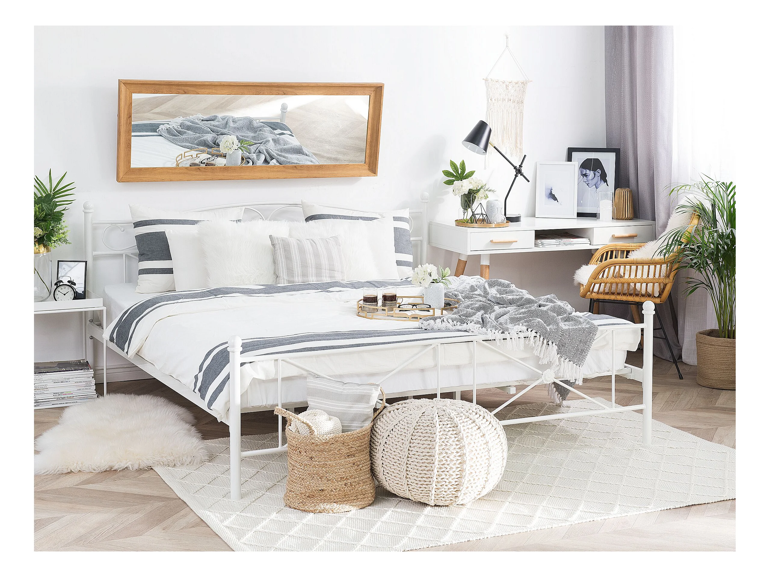 Lit double métal + tête de lit/pied de lit blanc 160x200cm FR93160
