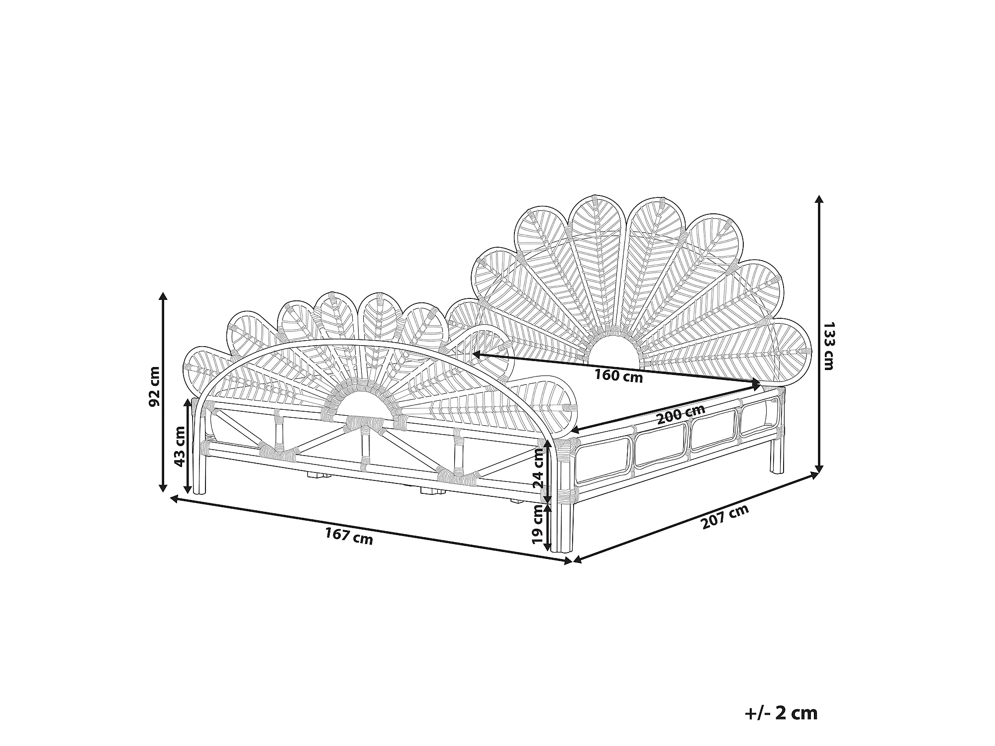 Lit avec sommier Rotin FLORENTINE 160 x 200 cm Marron clair
