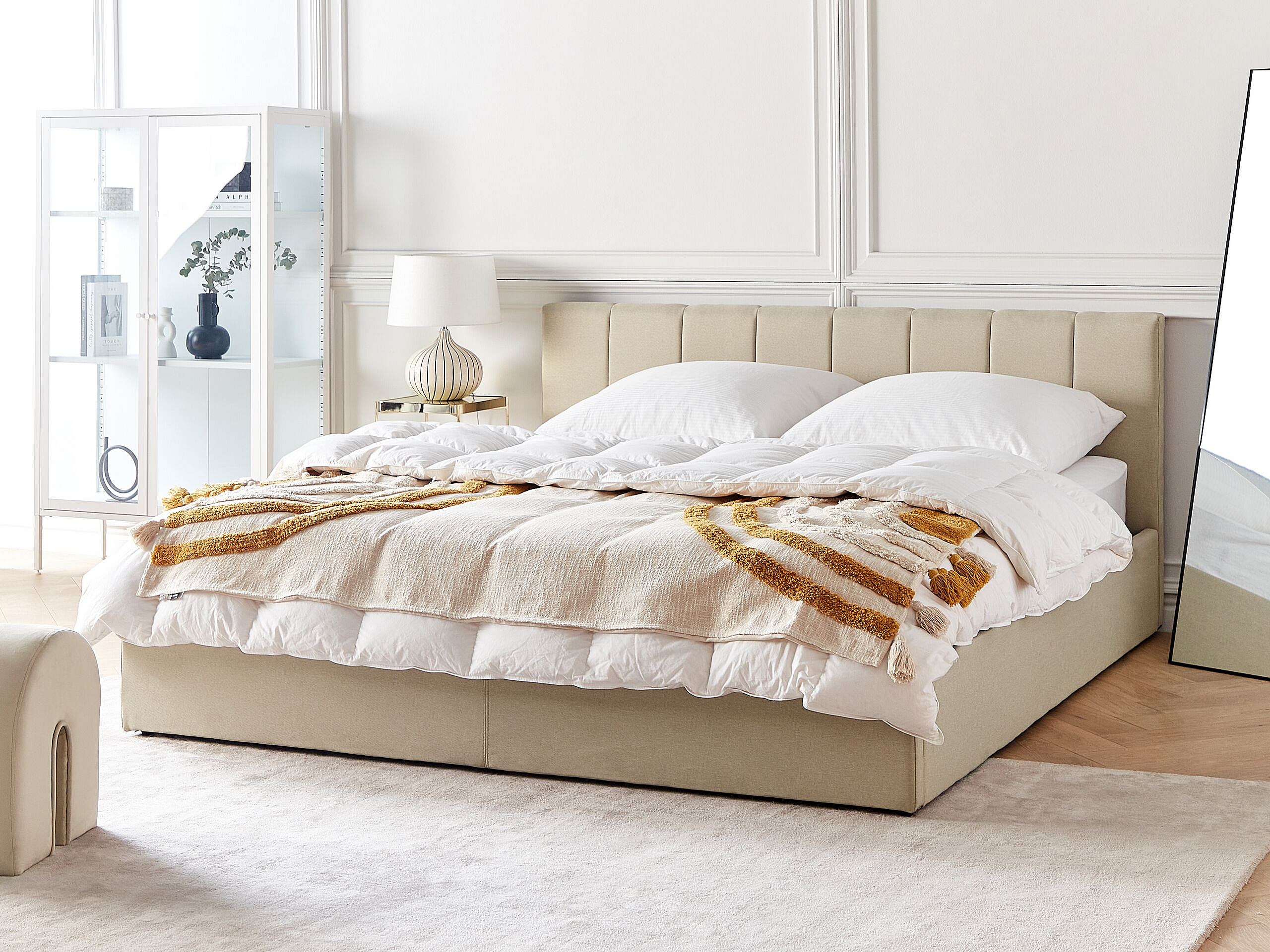 Lit ottoman Tissu DREUX 180 x 200 cm Beige