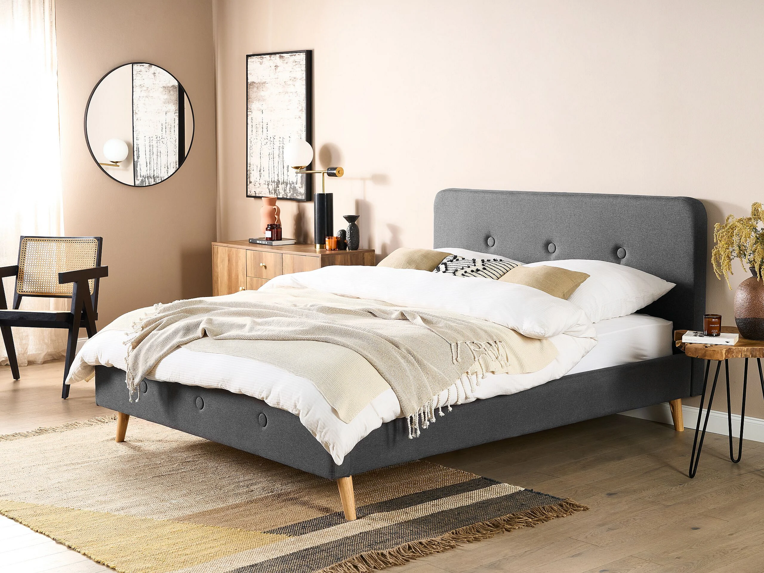 Lit avec sommier Tissu RENNES II 160 x 200 cm Gris foncé