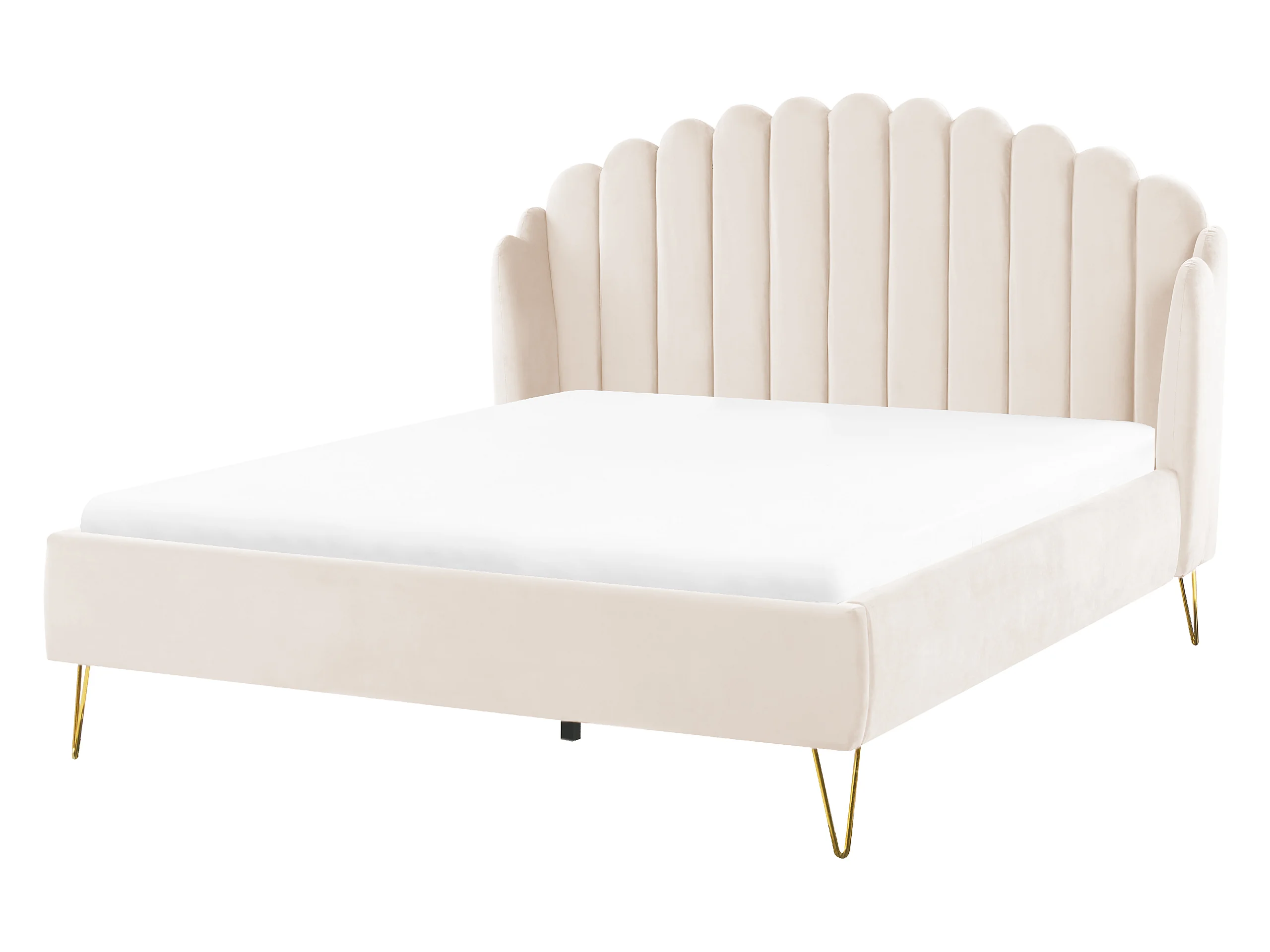 Lit avec sommier Velours AMBILLOU 160 x 200 cm Beige clair