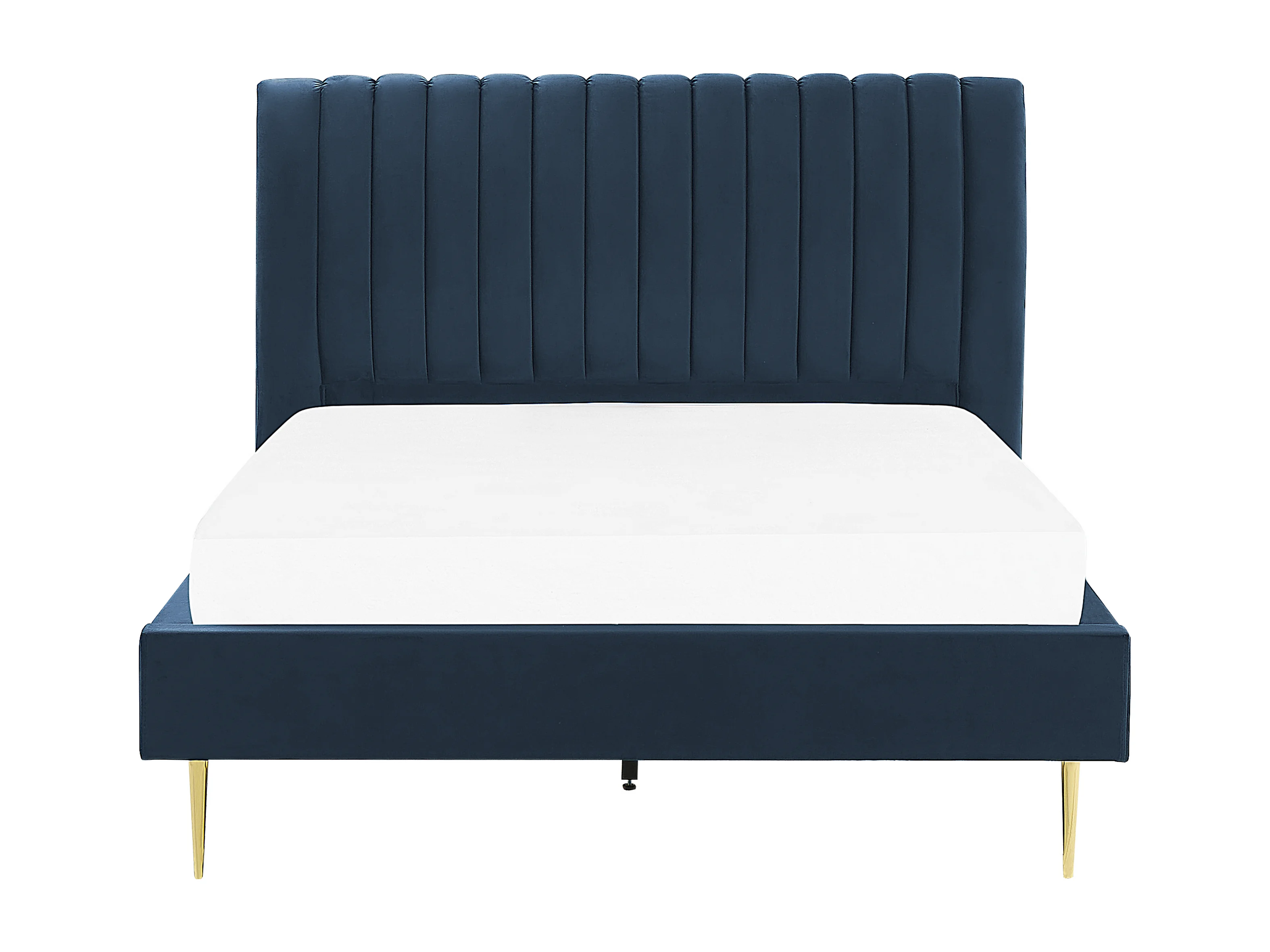 Lit avec sommier Velours MARVILLE 140 x 200 cm Bleu foncé