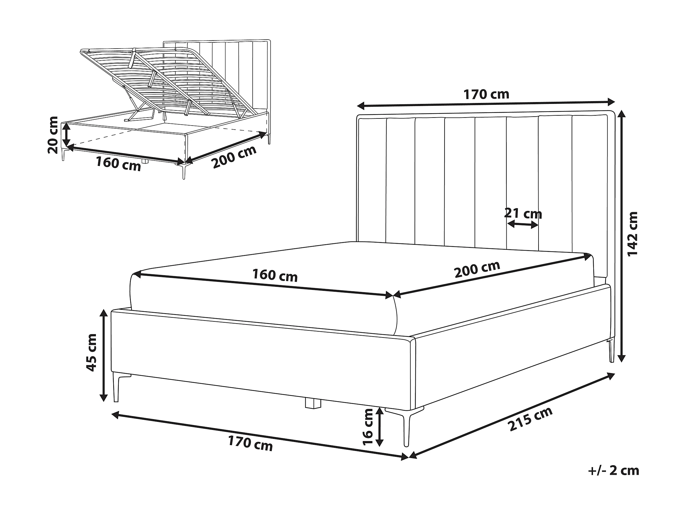 Lit ottoman Velours SEZANNE 160 x 200 cm Bleu marine