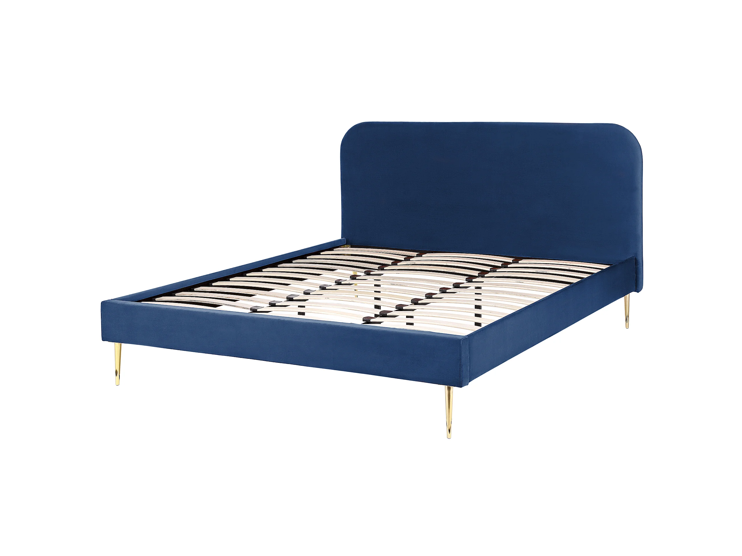 Lit avec sommier Velours FLAYAT 180 x 200 cm Bleu marine