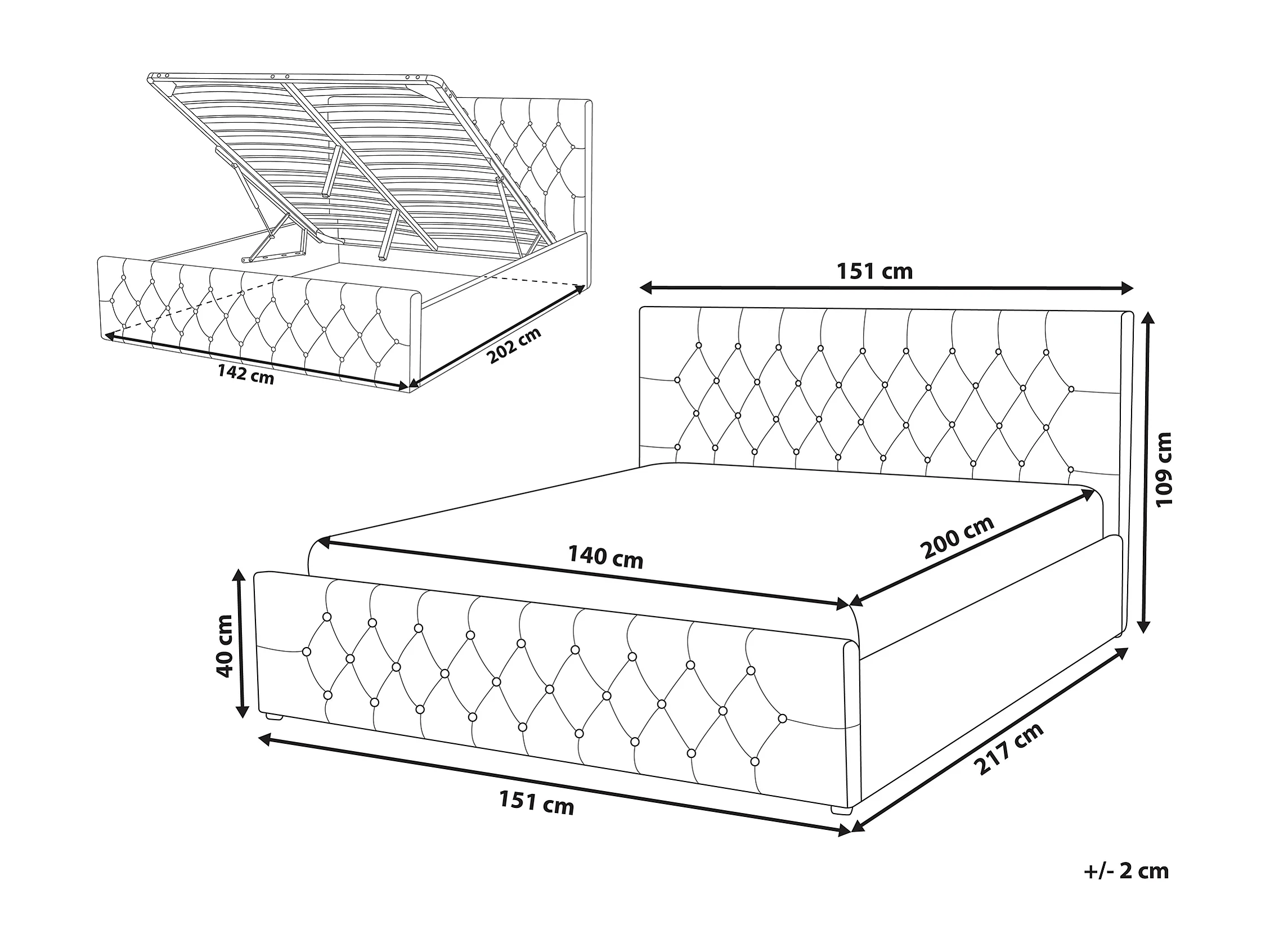 Lit ottoman Velours AMIENS 140 x 200 cm Gris