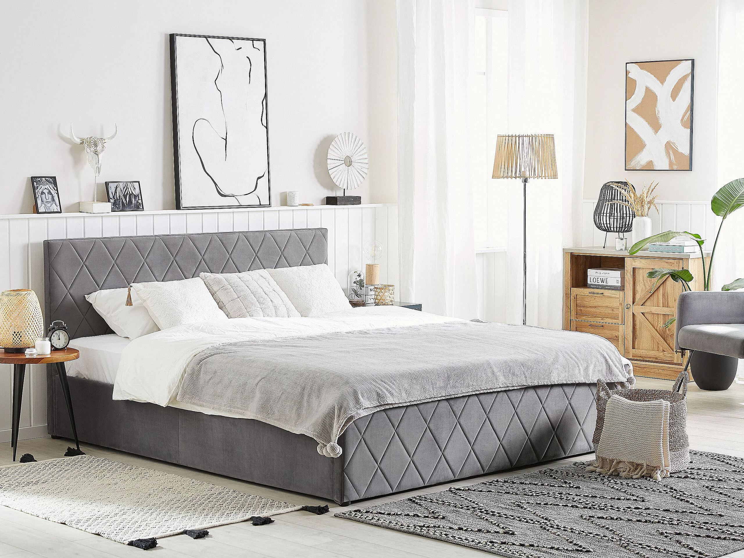 Lit ottoman Velours ROCHEFORT 180 x 200 cm Gris
