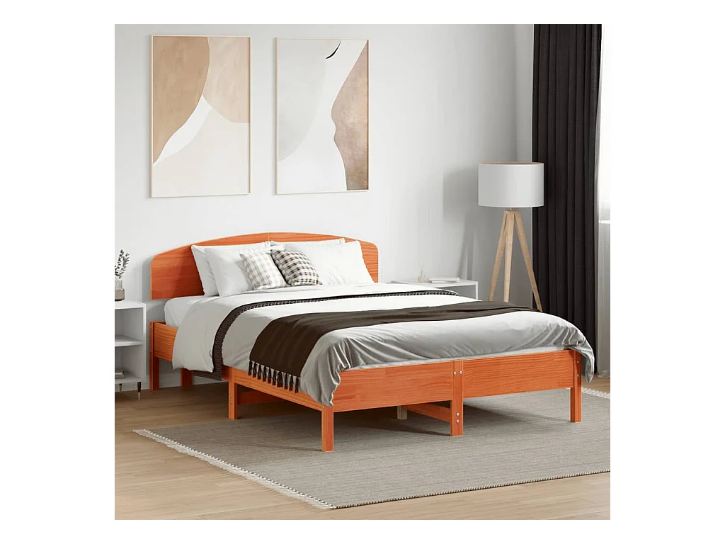 Lit double et tête de lit cire marron 135x190 cm bois de pin FR48079